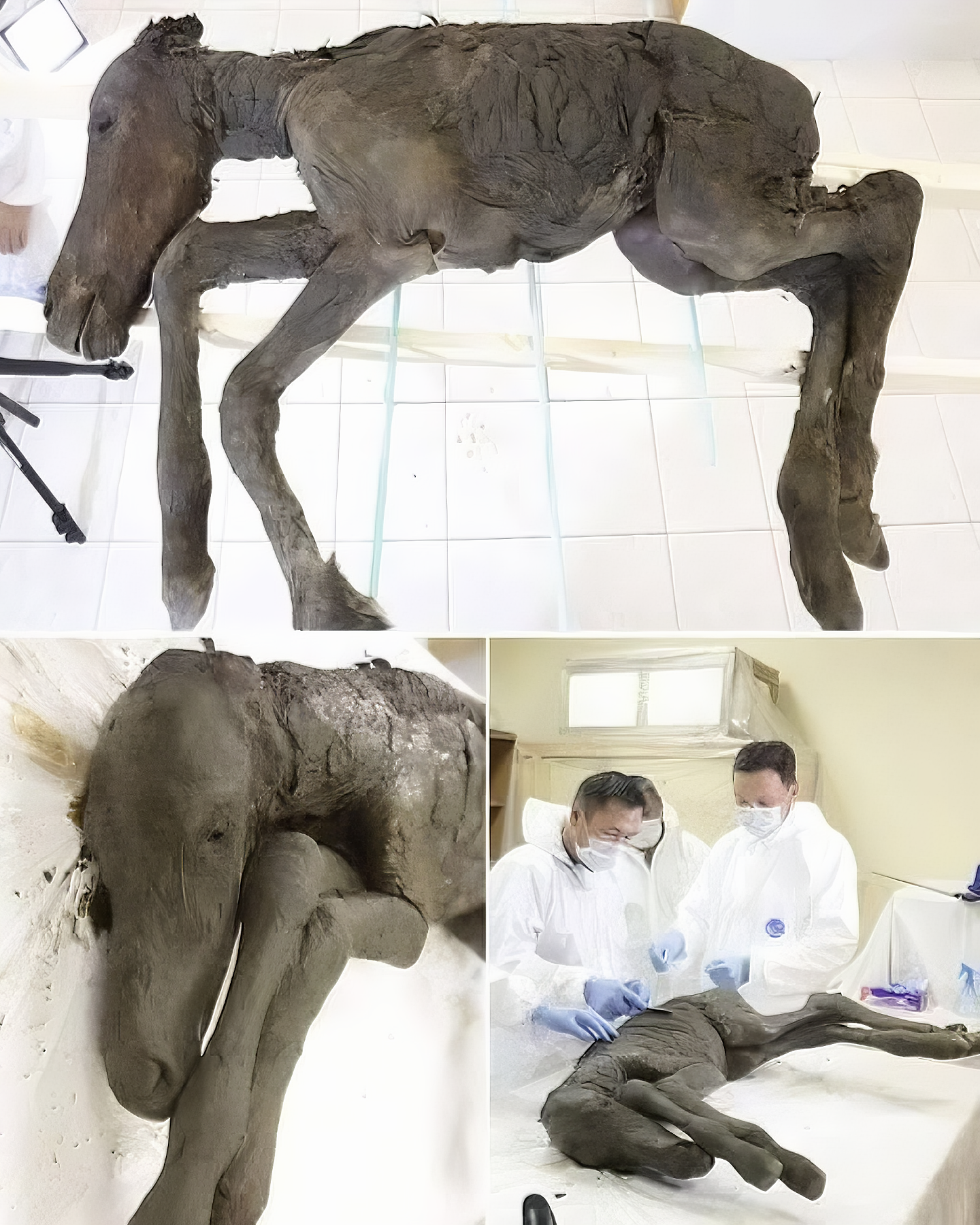 사진은 2018년 시비리아 영구동토층에서 발굴한 4만2천년 전 완벽하게 보존된 말 새끼다.