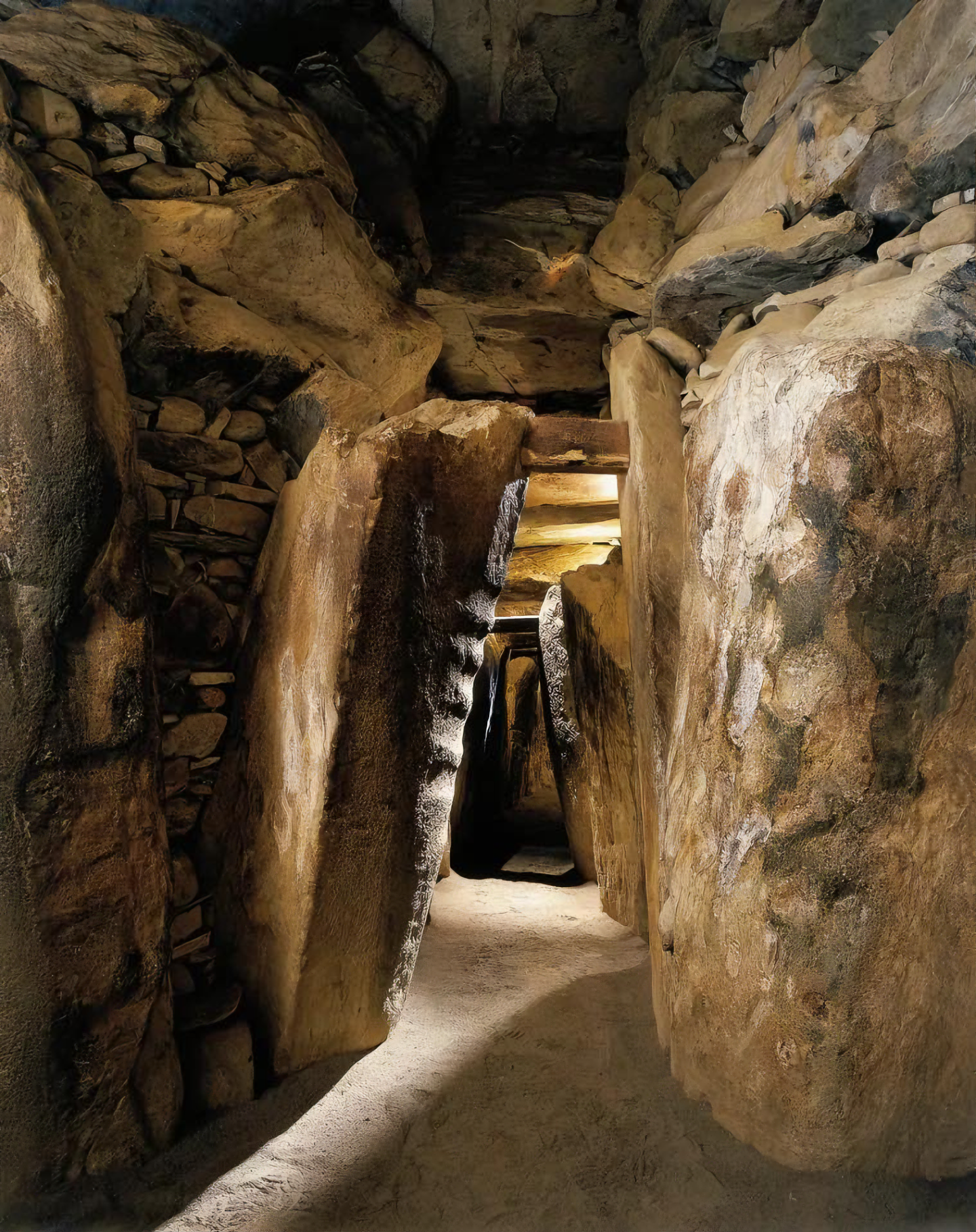 뉴그레인지는 이 통로가 동지winter solstice 때 햇볕이 드는 방향과 일치한다 해서 특히 유명하다.