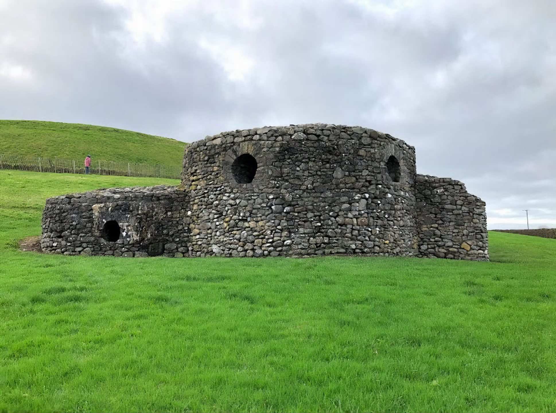 저 시대에 이미 지름 약 85m(279피트), 높이 13.5m(44피트)인 큰 원형 마운드를 쌓았다는 것이 기적으로밖에 생각되지 않거니와 그에 더해 큰 돌로 된 원형 호석circular kerb of large stones을 둘렀다.