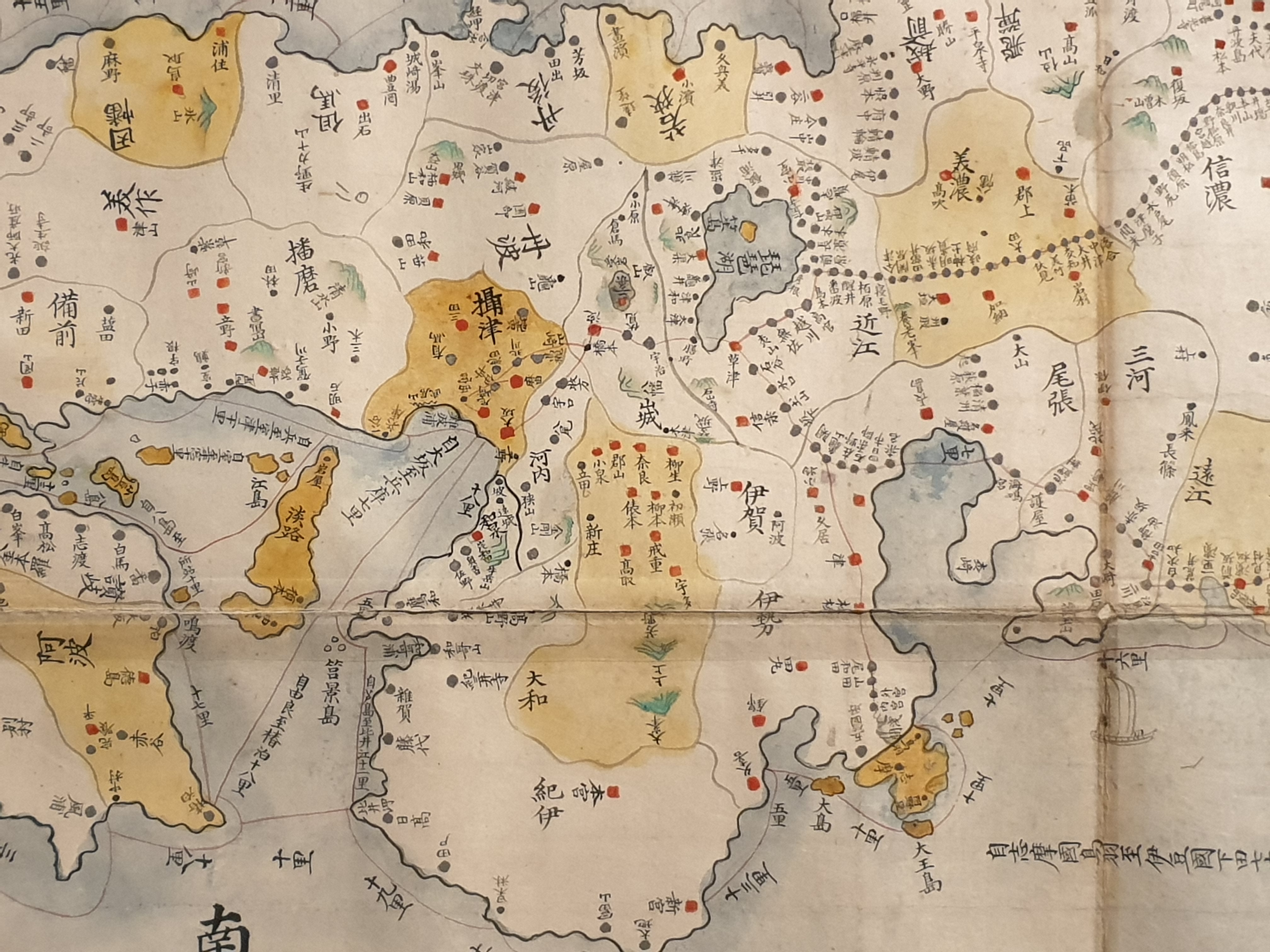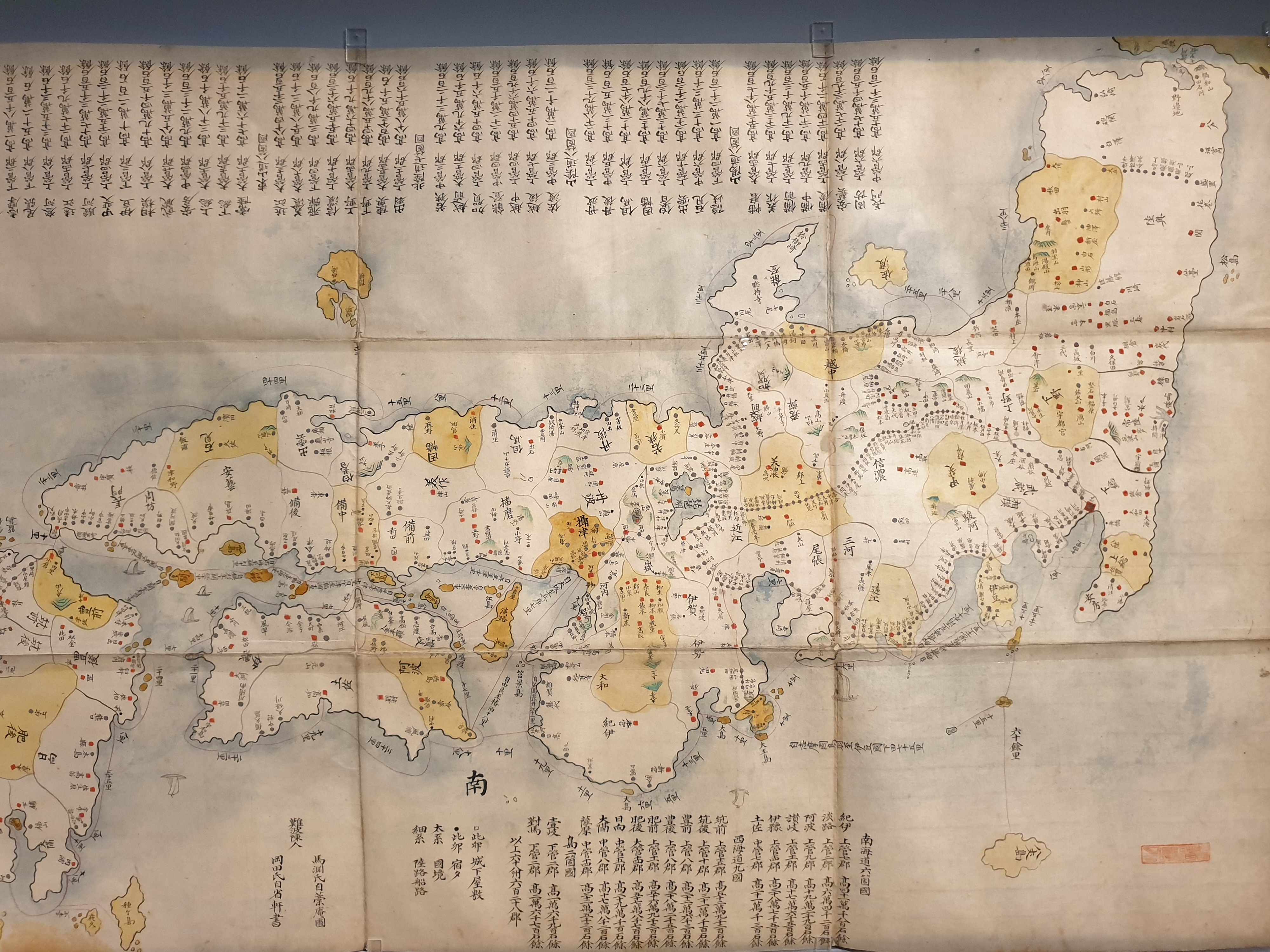 개중 이 일본 지도는 "성대중이 통신사행을 통해 구입해왔다[日本國 成渭原大中通信行購來本]는 기록을 통해 1763-64년 통신사로 일본에 갔던 성대중成大中(1732~1809)이 가져온 지도를 모사한 것임을 알 수 있다.