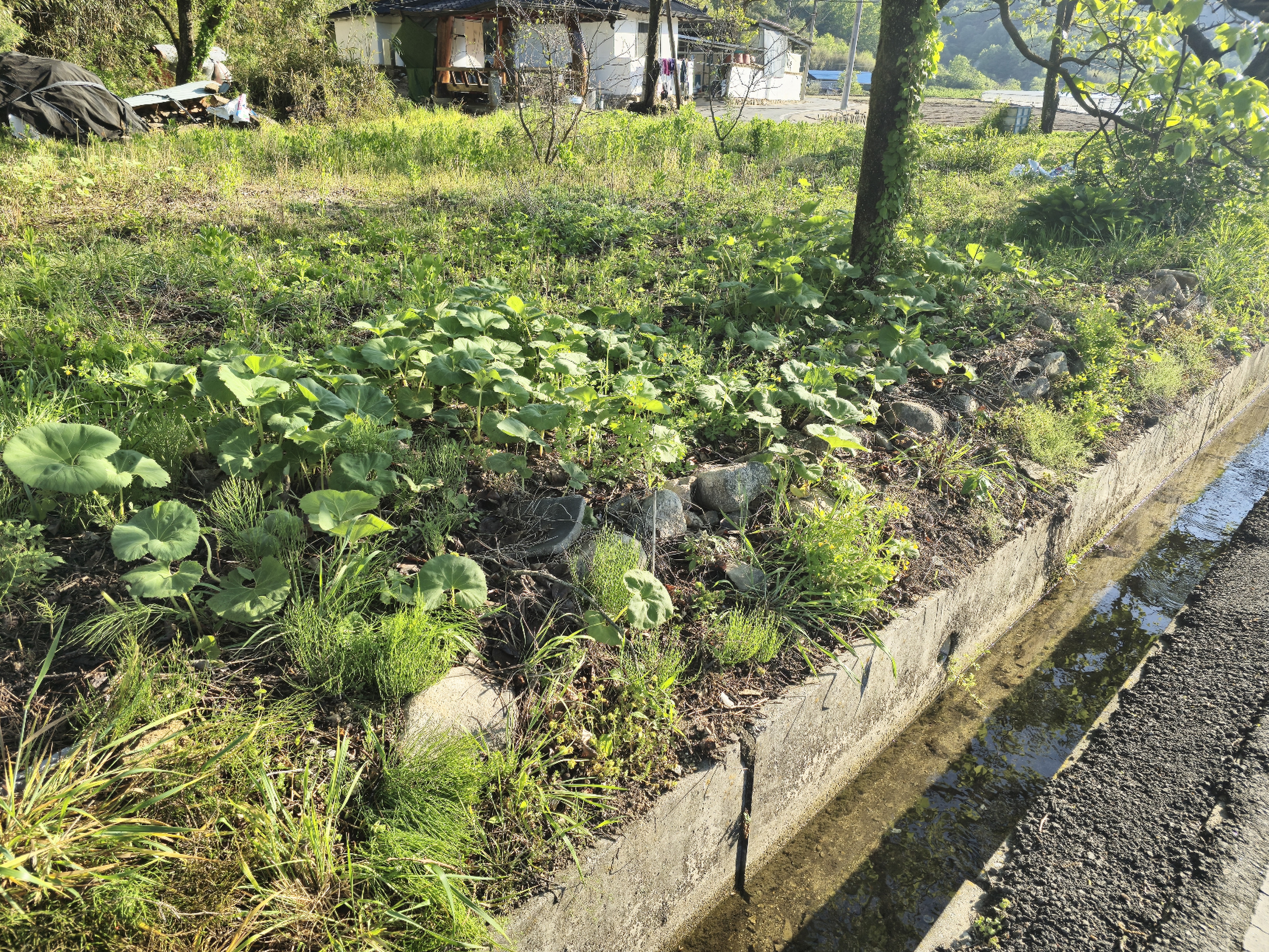폐허가 된 집자리는 머구 차지다.