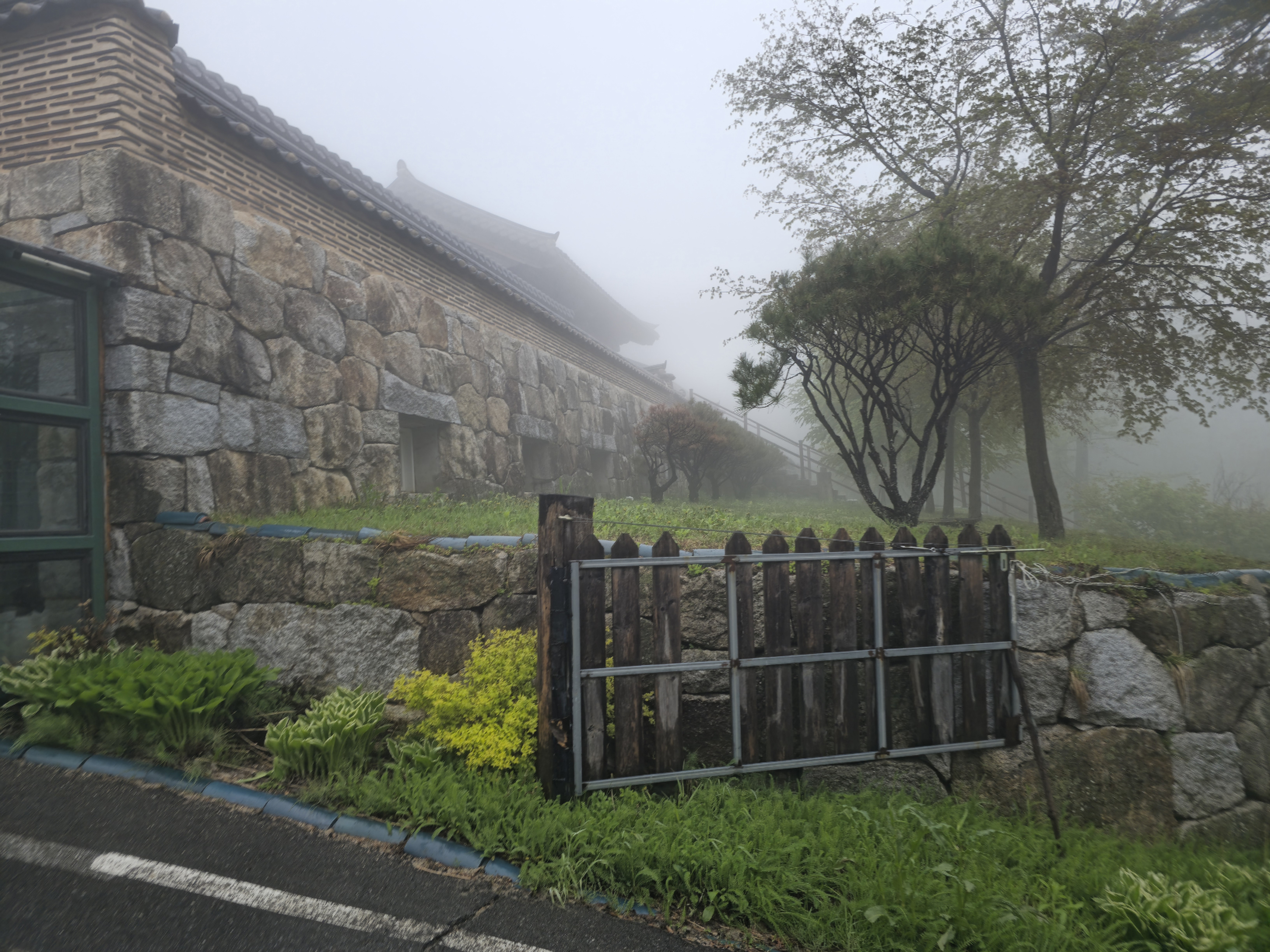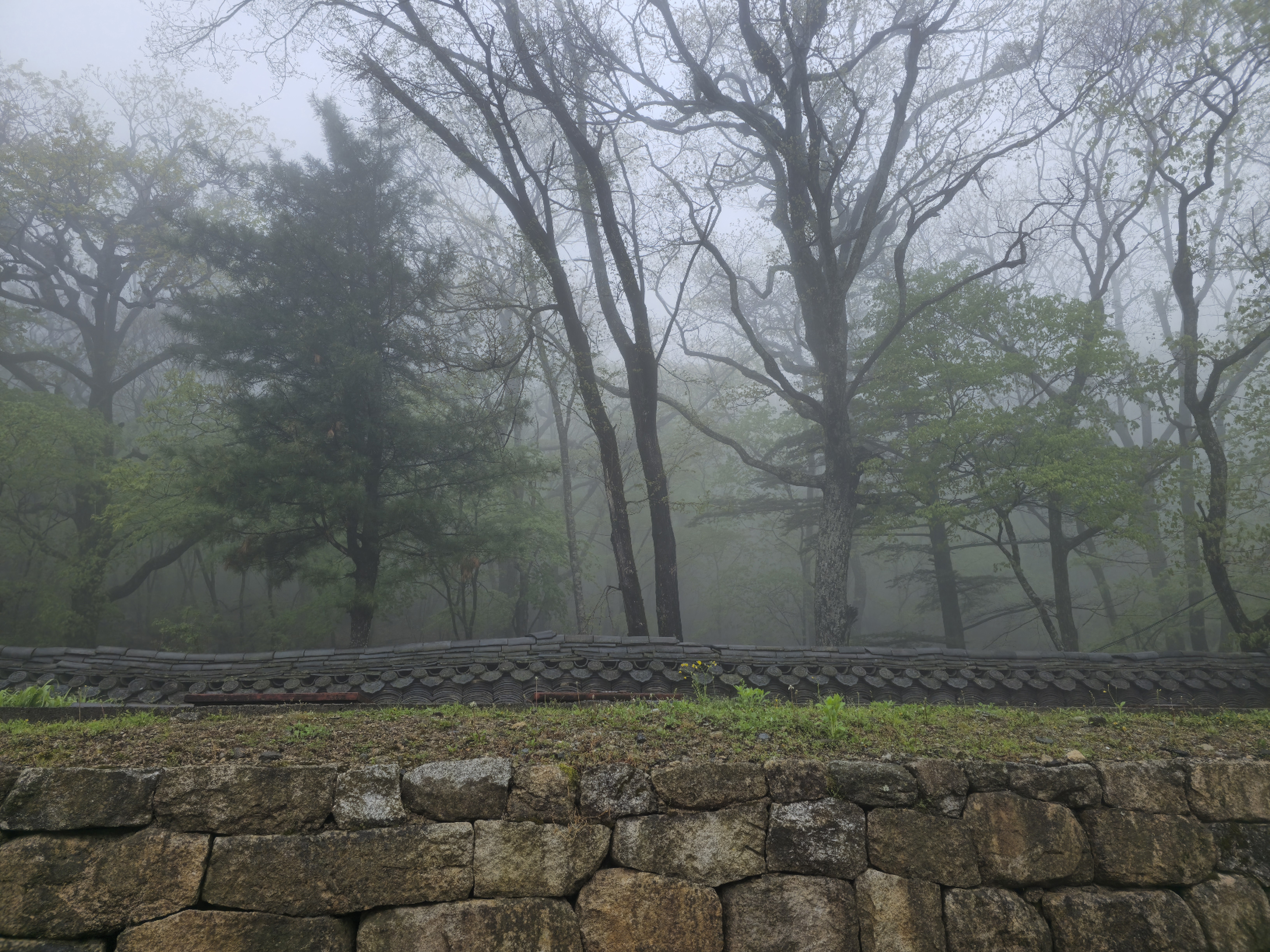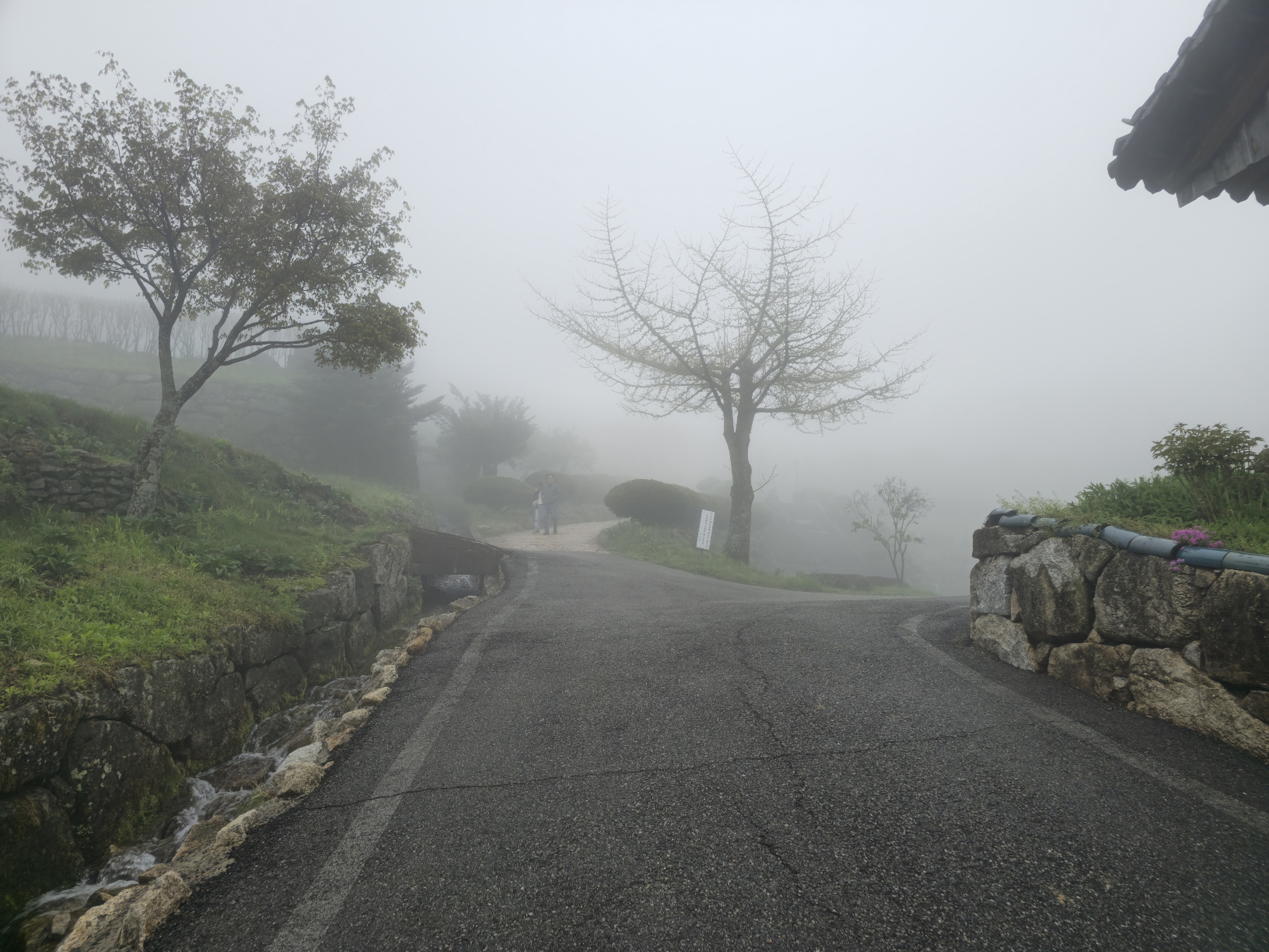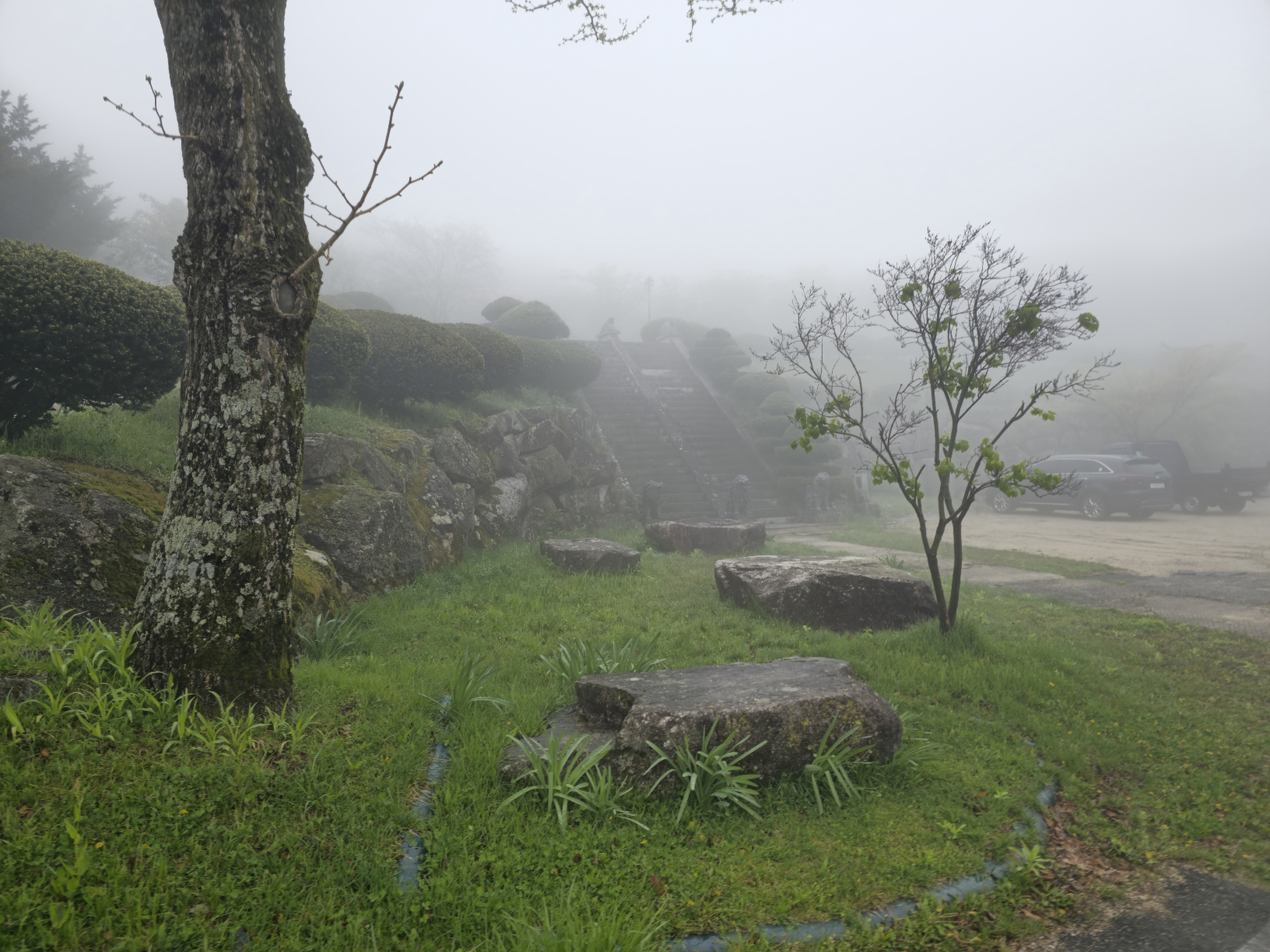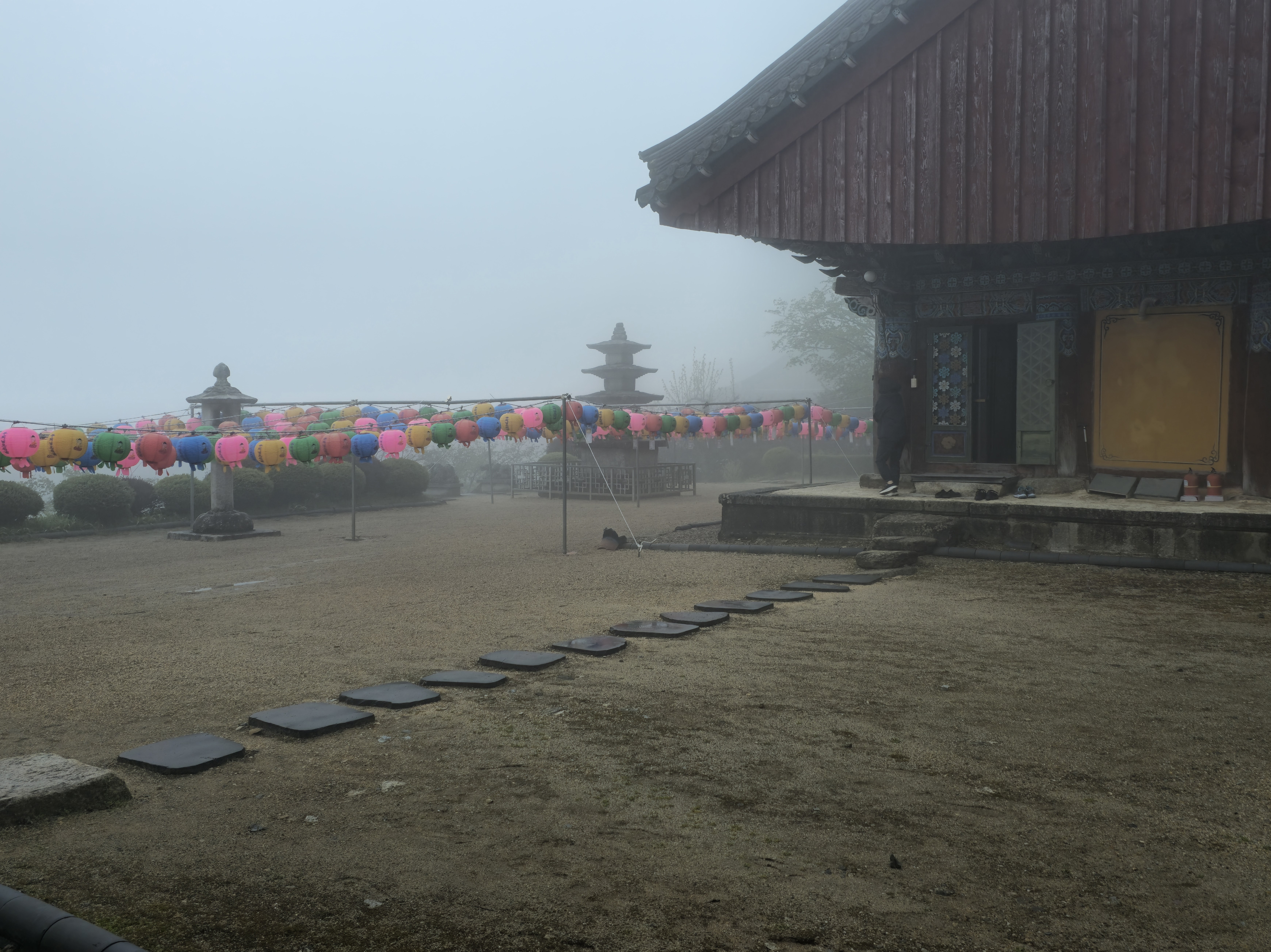 부처님 뒤로하고 금당 나서니 연무가 걷히기 시작했다.