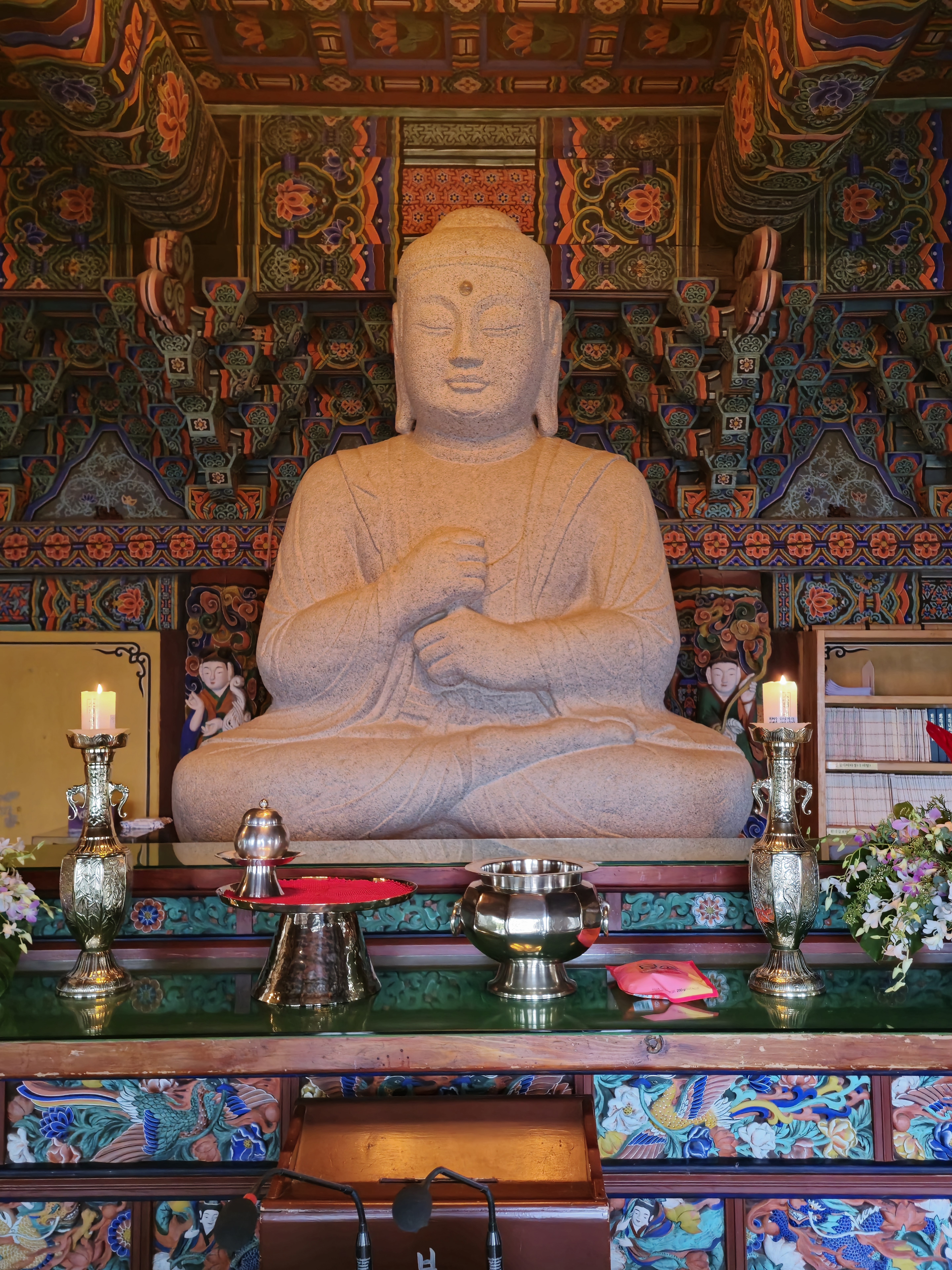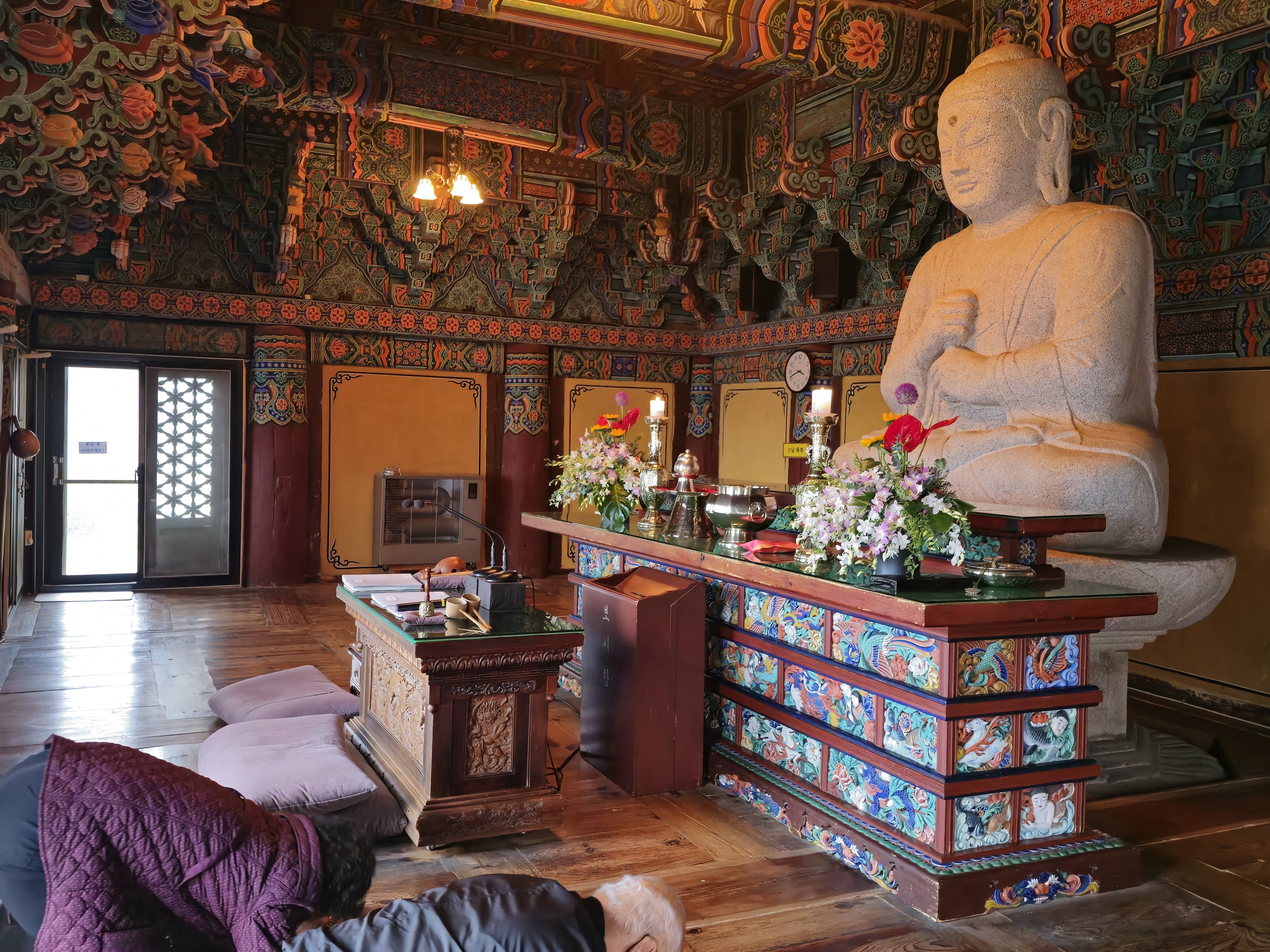 희뿌염 뒤로 하고선 대적광전 들어선다.