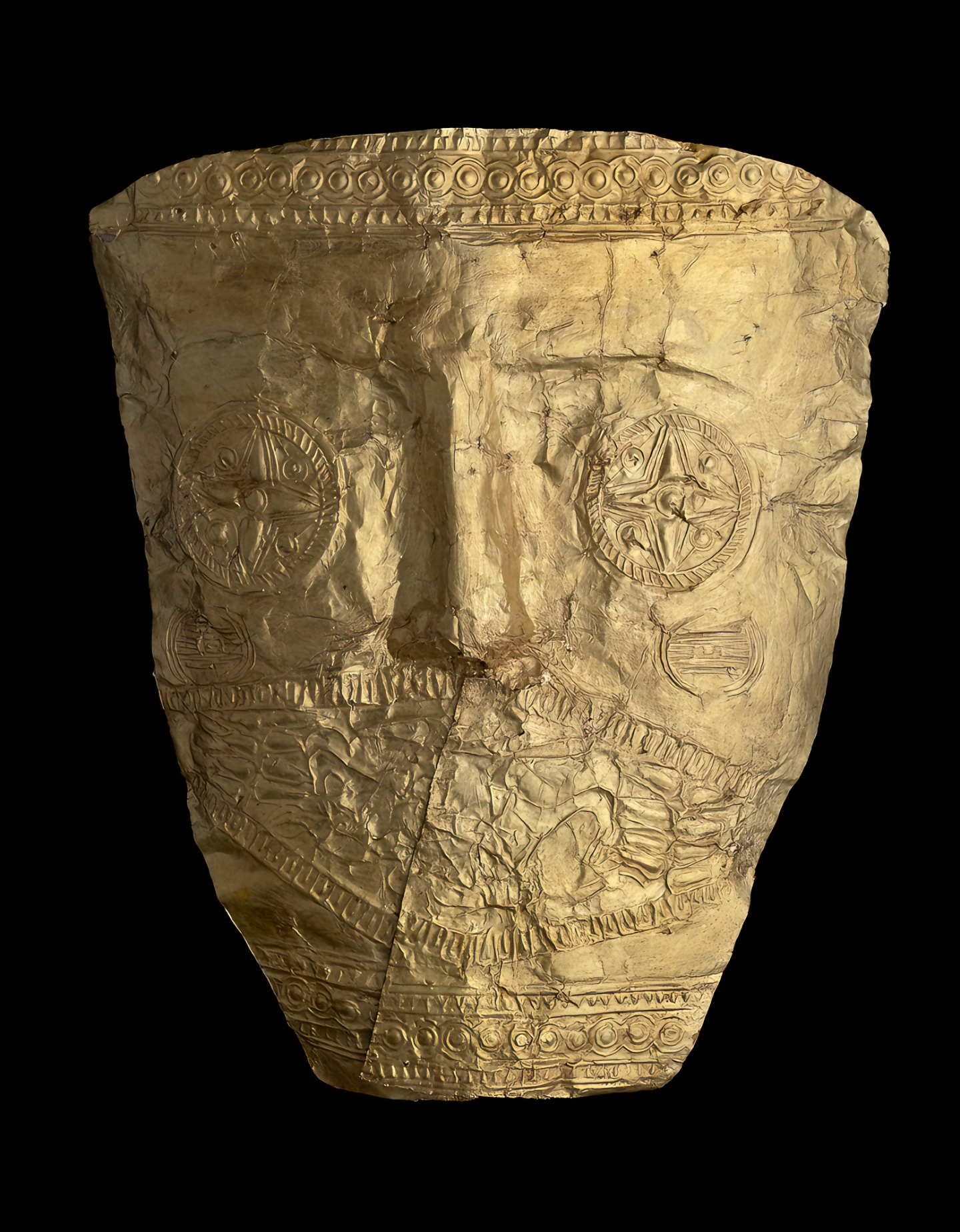 그녀는 얼굴을 가린 황금 가면, 금 귀걸이, 그리고 머리카락을 장식한 섬세한 금 머리띠headband를 착용한 채 안치되었다.