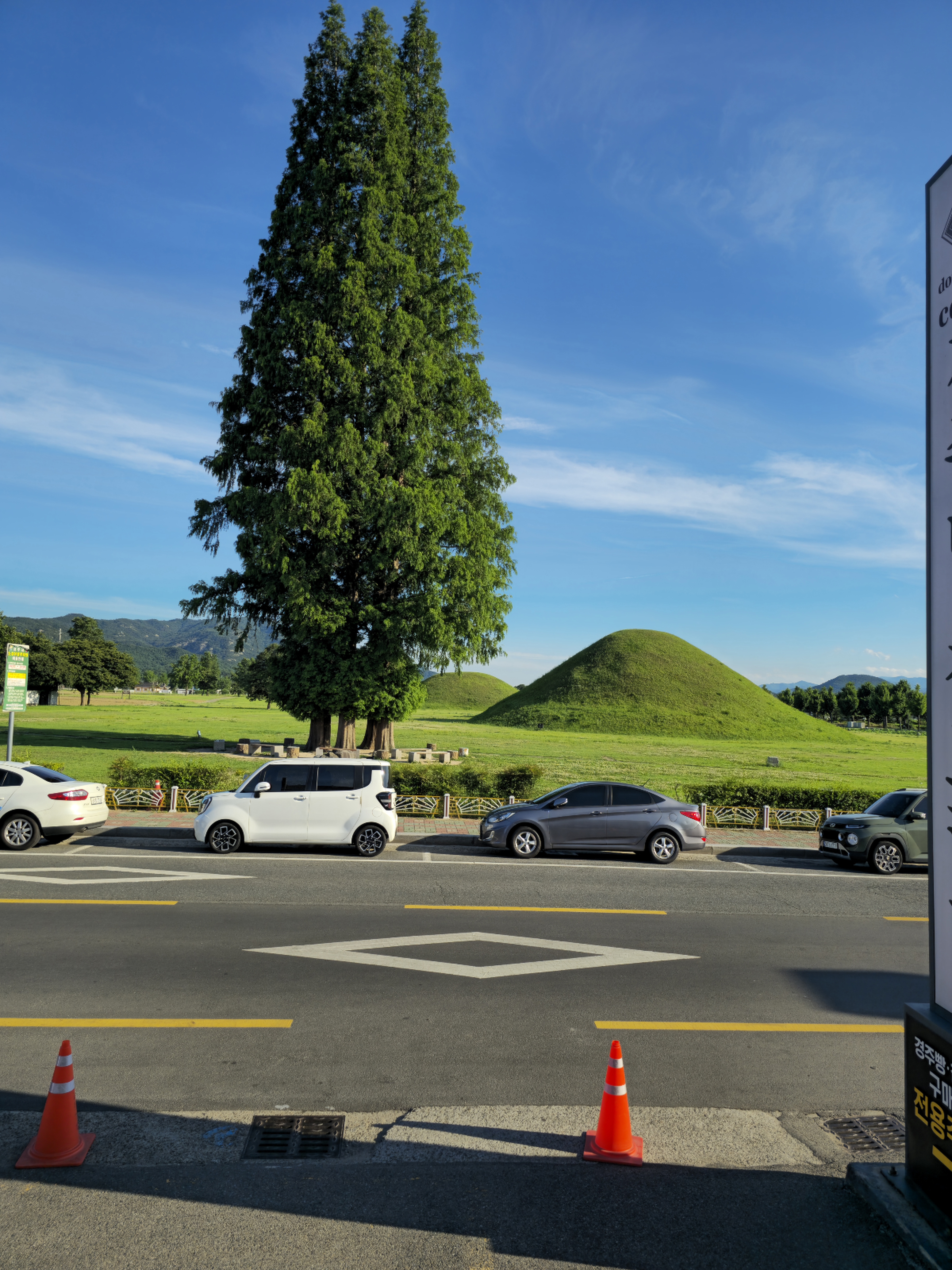 회의 시작 시간은 저녁 여섯시반이라 그 시간까지 경주 시내 메타세콰이어 거목 다섯 그루가 신라시대 거대한 무덤 뒤로 하고선 하늘로 치솟은 시내 한 켠에서 에어컨 빵빵한 다방서 시간을 때웠다.