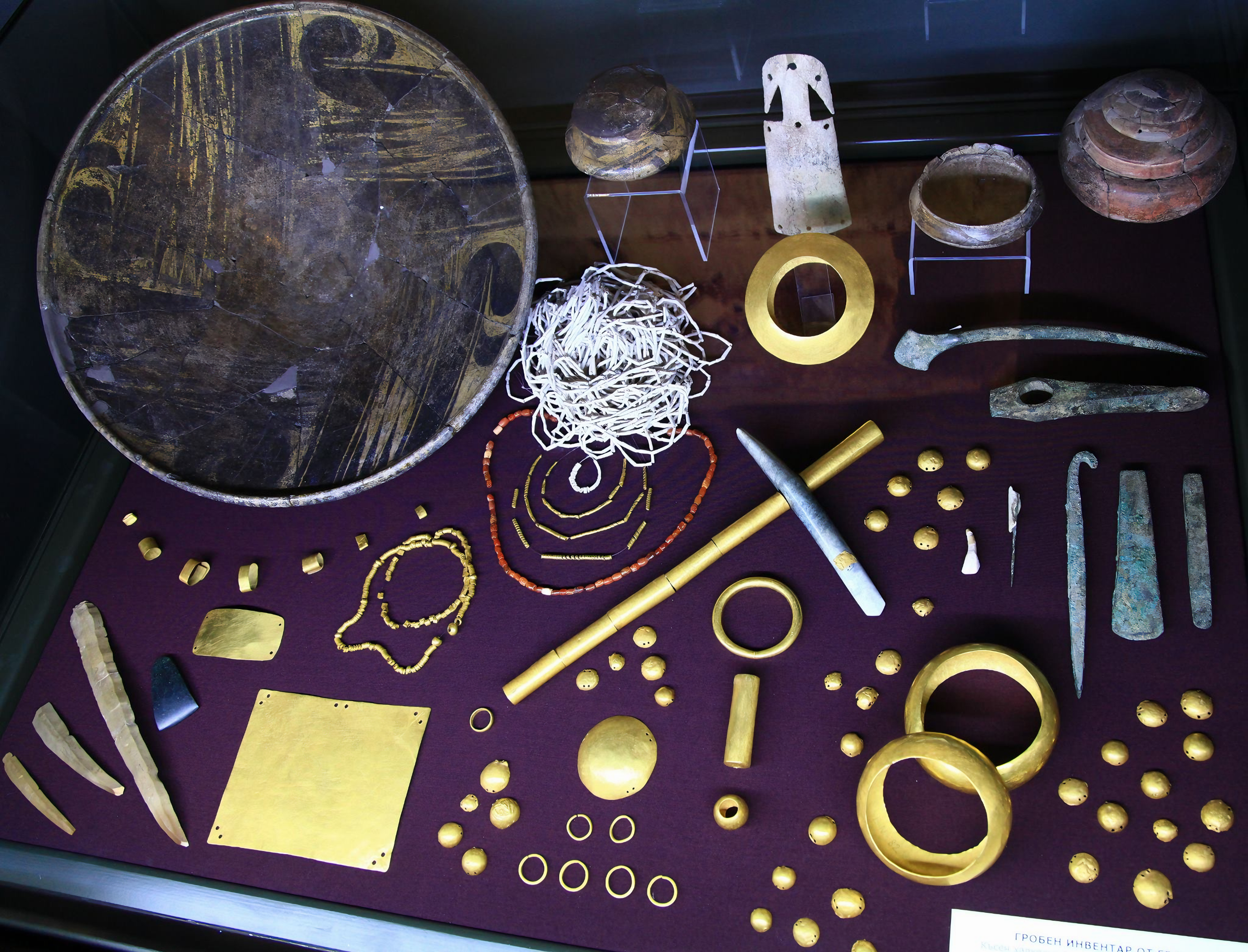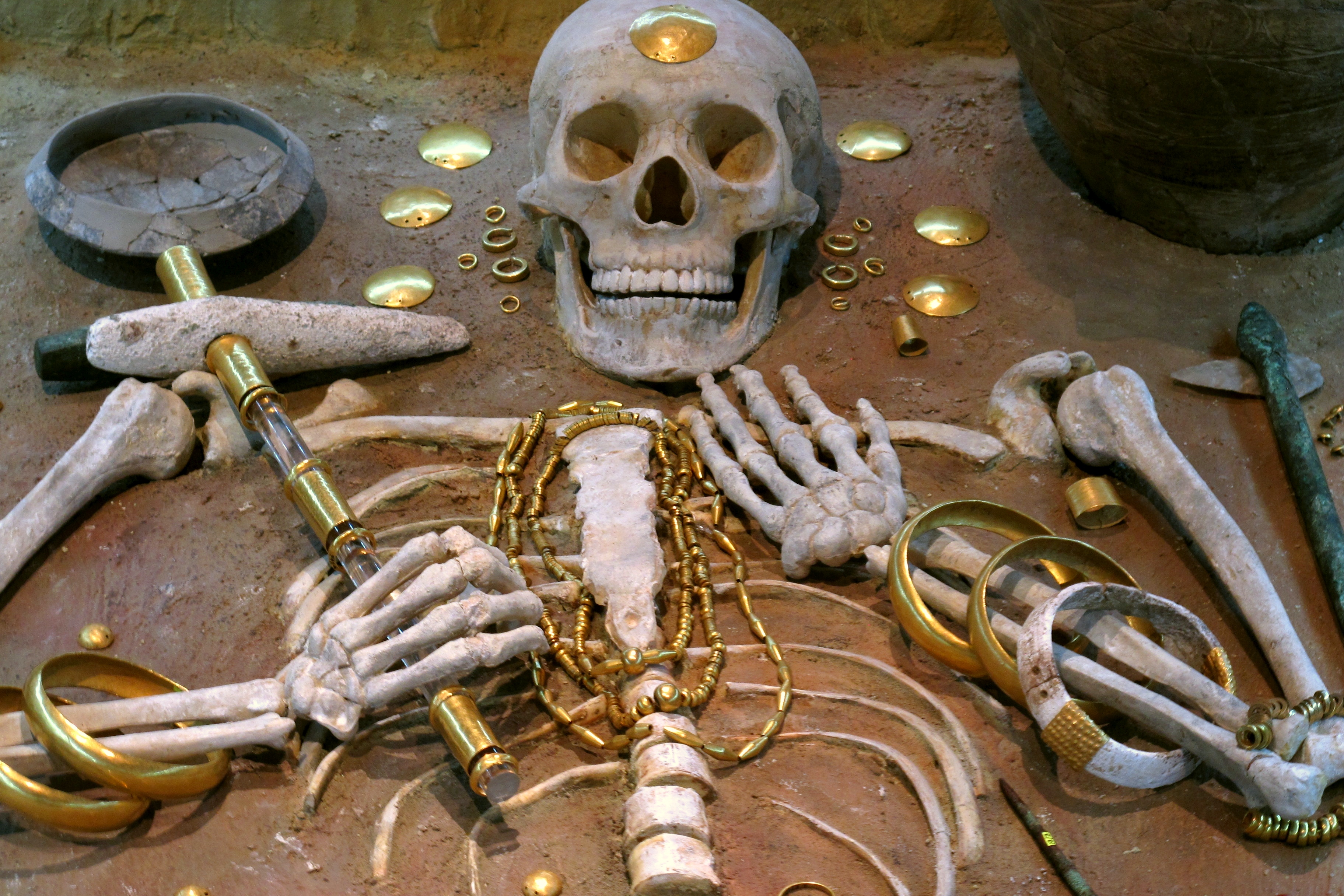 이 무덤에서는 총 무게 1.5kg에 달하는 금품 990점, 구리와 플린트로 만든 여러 도구, 그리고 도기 그릇들이 발견되었다.