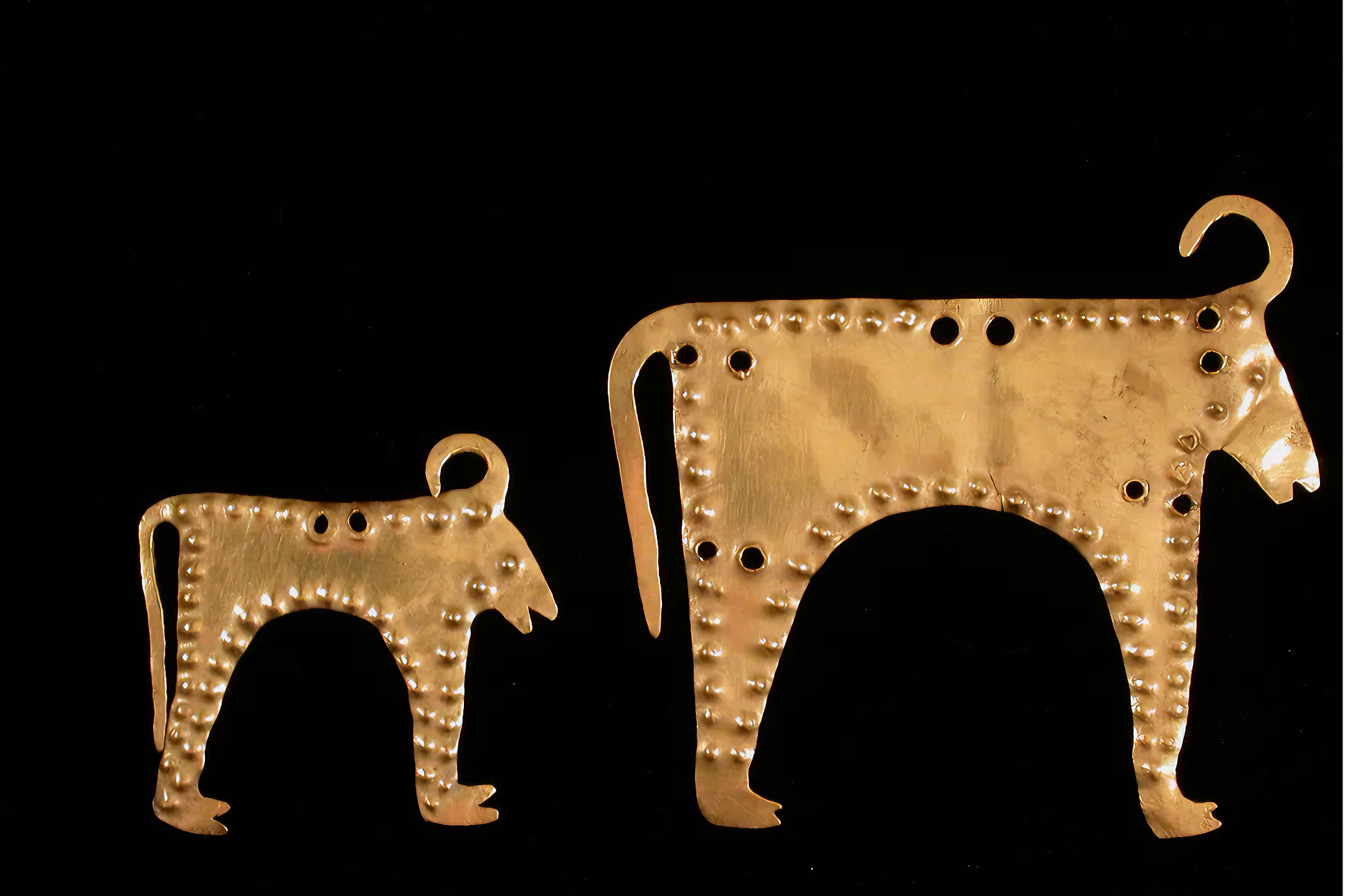 예를 들어, 36호 무덤에서는 동물 모양 금판 두 개와 금으로 장식한 뿔 달린 동물 머리 30개가 발견되었다.