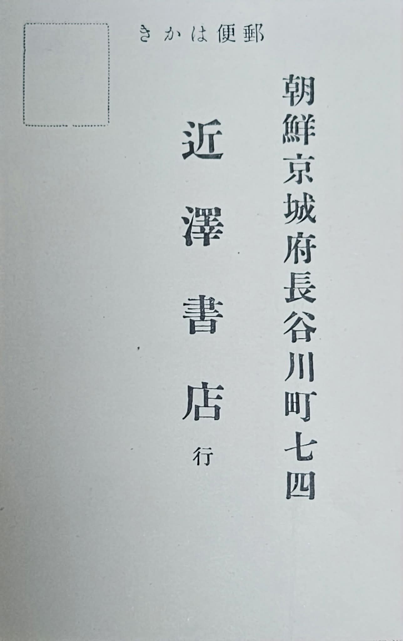 (사진은 1931년 근택서점, 곧 치카자와쇼텐에서 만든 도서구매용 우편엽서의 앞면. 1931년이란 연대 추정이 가능한 이유는 후술하겠다)