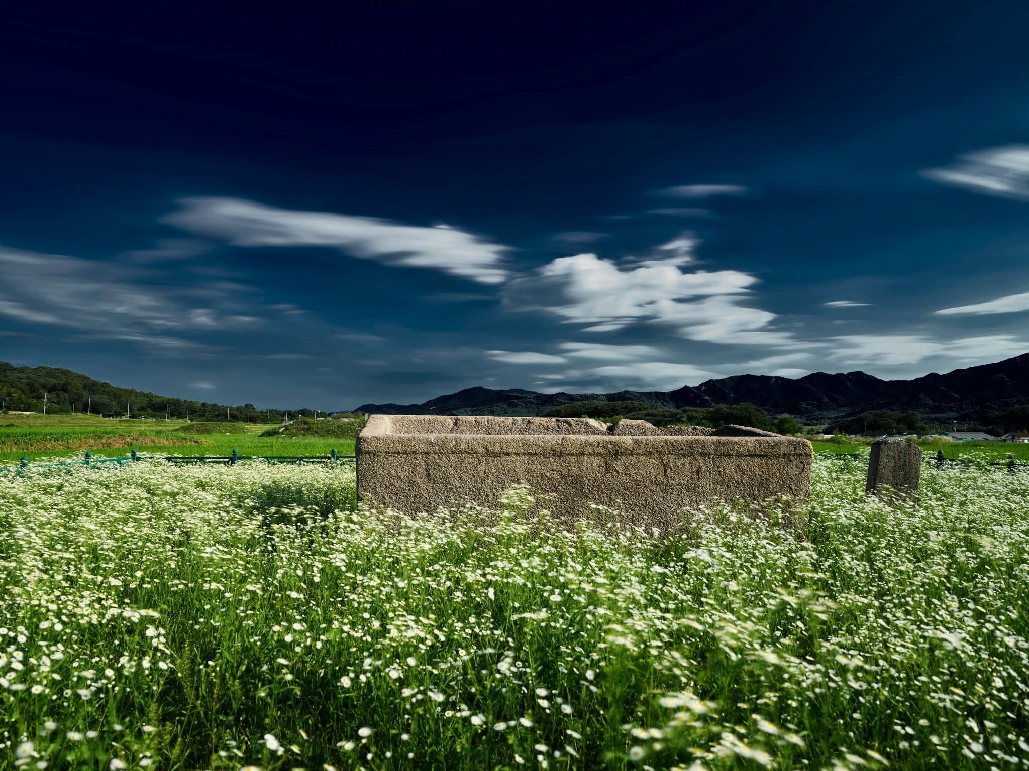 특히 들꽃과 어우러진 뭉게 구름 하늘이 받침할 때는 더욱 그러해서