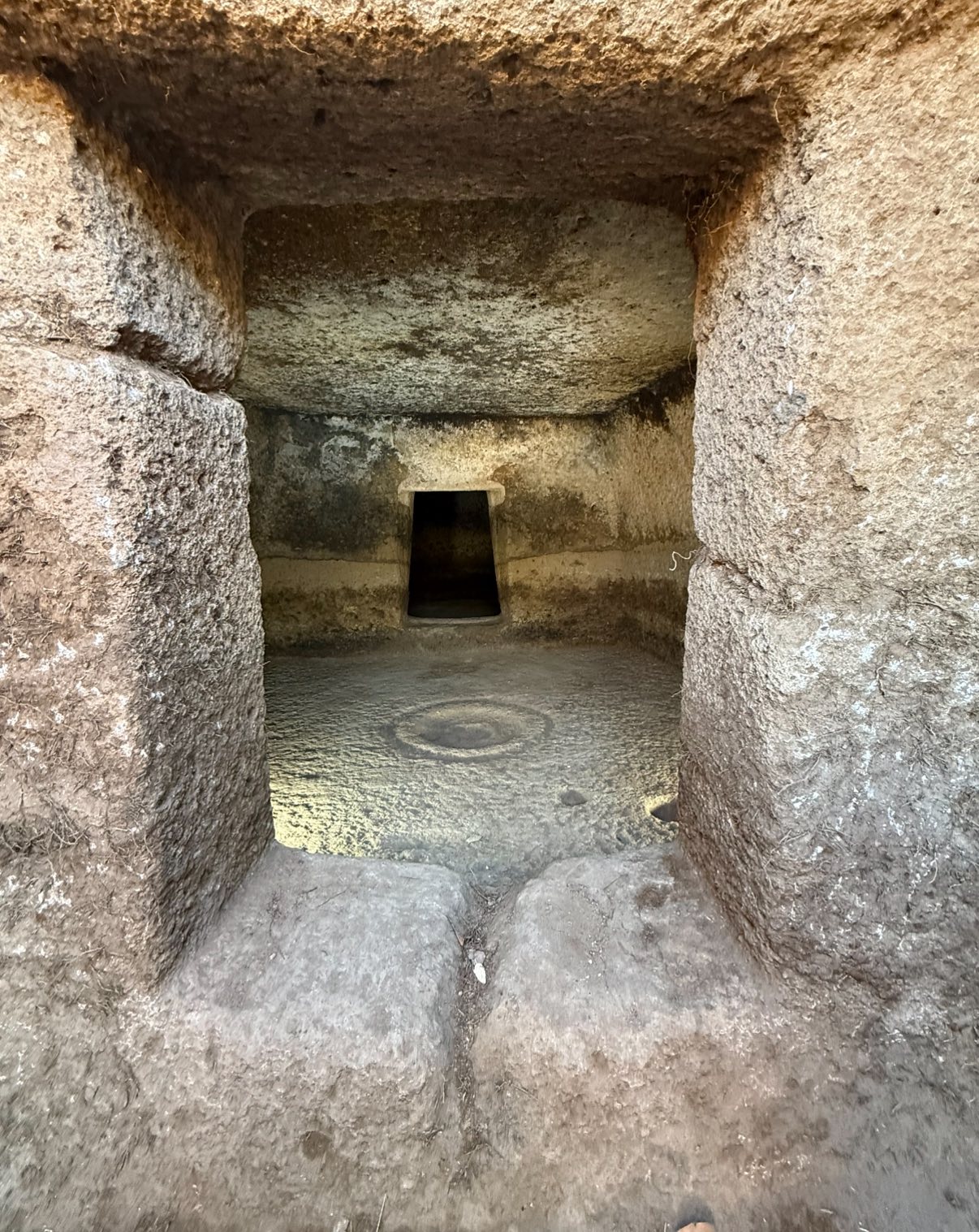 무덤 내부 구조는 치밀하게 계획된 것으로, 사각형 입구 무덤방 중앙에는 양각된 화덕hearth과 그에 따른 중앙 공간이 있다.