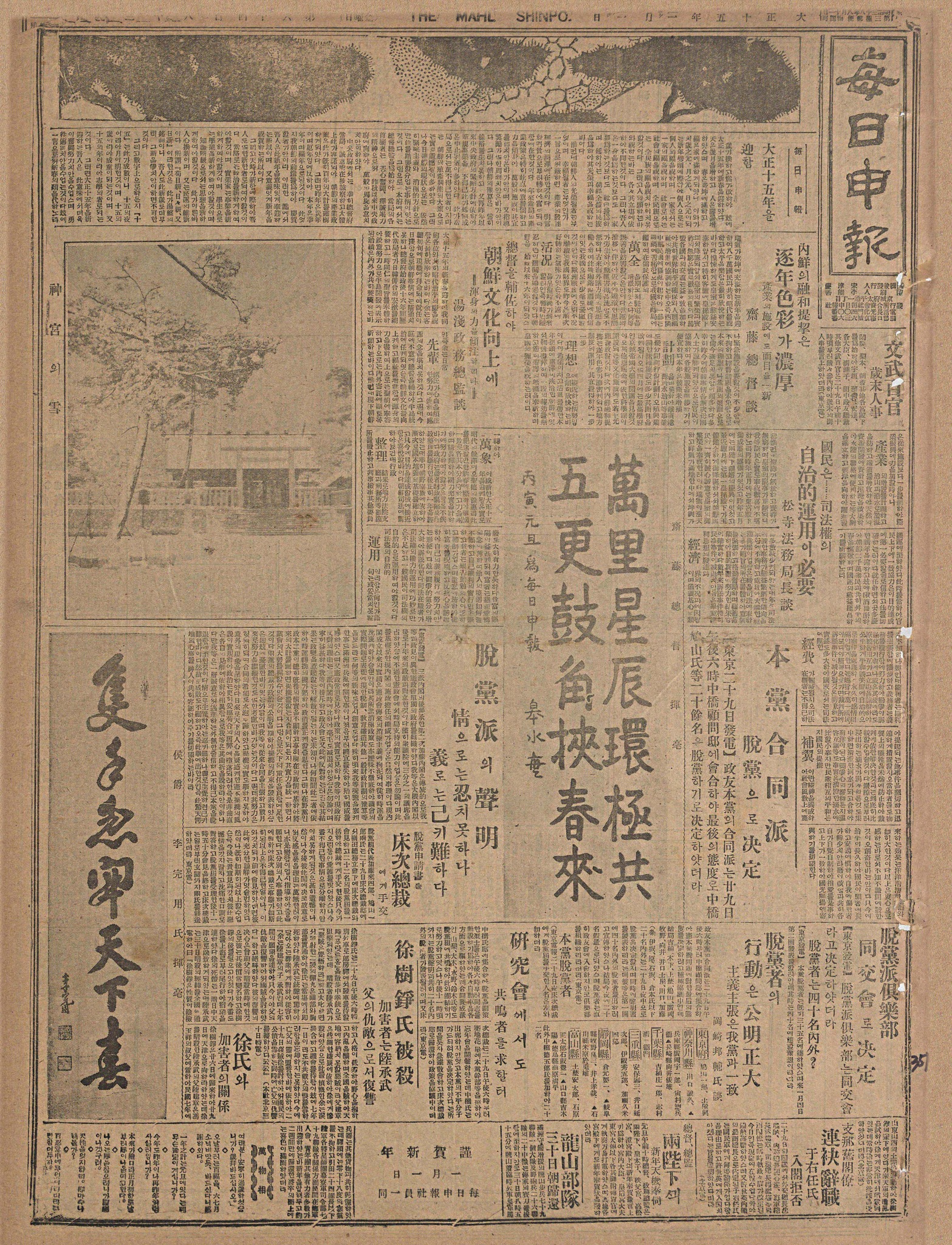 그때 그 시절 신문사에서는 새해나 기념할 만한 날에 명사의 붓글씨나 그림을 받아 신문지상에 싣곤 하였는데, 이완용의 글씨도 제법 보인다.
