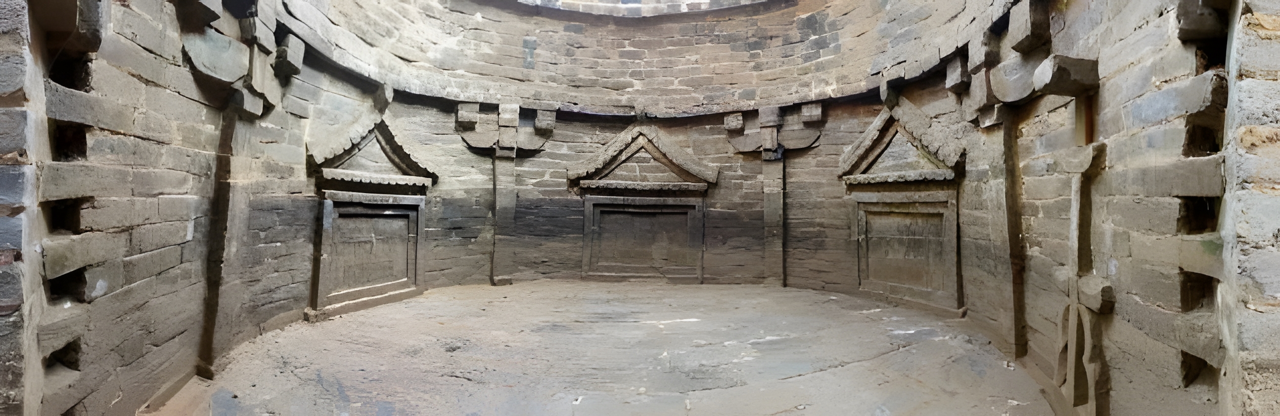 전실묘는 원형 벽돌방이 주를 이루며, 일부 무덤 내벽에는 책걸상桌椅, 옷걸이衣架, 램프灯檠 등의 벽돌 조각이 있고, 바닥에는 일반적으로 요자형凹字形 관상棺床이 있으며, 관상에는 1구에서 4구 인골이 있어 천장迁葬한 징후가 뚜렷하다. 껴묻거리는 도자기 사발瓷碗, 도자기 접시瓷盘, 도자기 항아리陶罐, 동전 등이 있다.