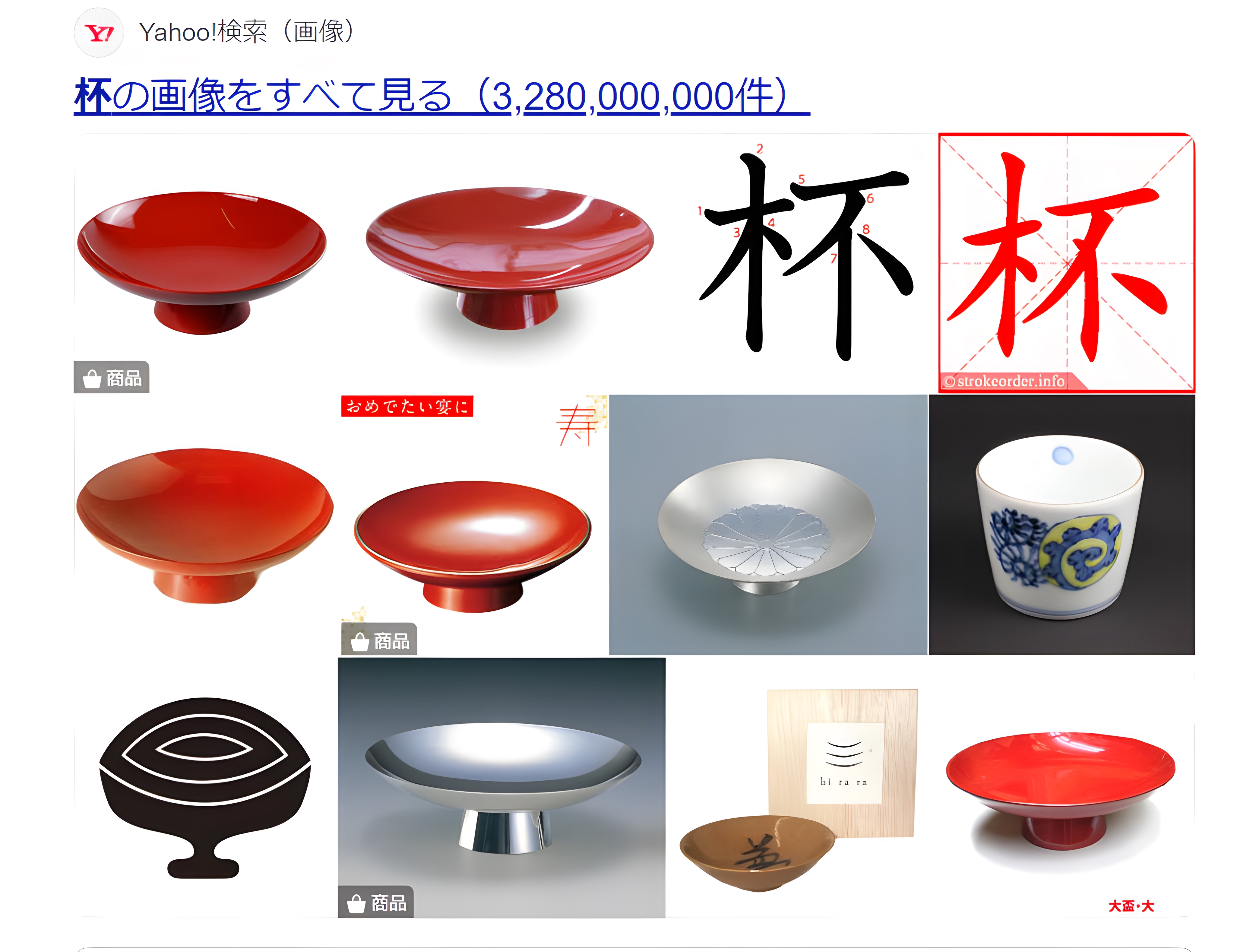 일본의 대표 검색엔진 야후저팬에다가 저 杯[배]라는 단어를 넣어보면