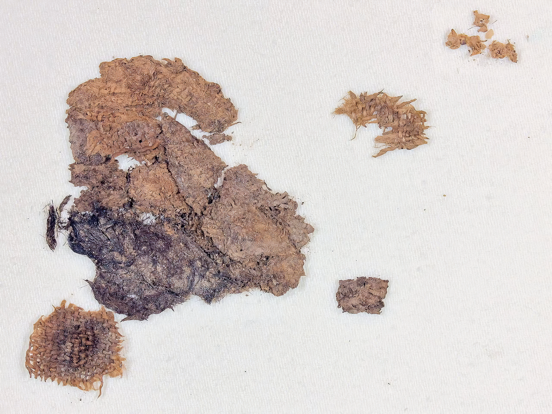 이 유물은 은의 항균성 덕분에 실크 장식과 곡물 및 약용 식물 꽃가루 잔여물이 담긴 호화로운 리넨 주머니에 싸여 있었다.