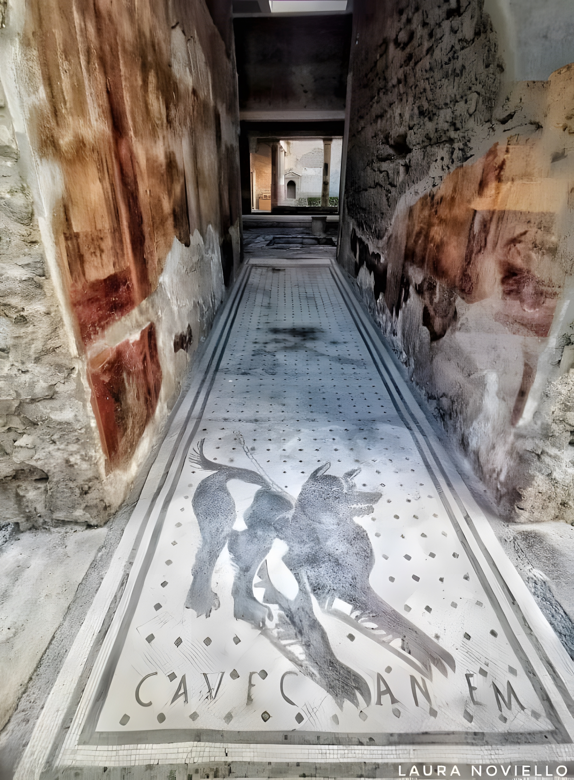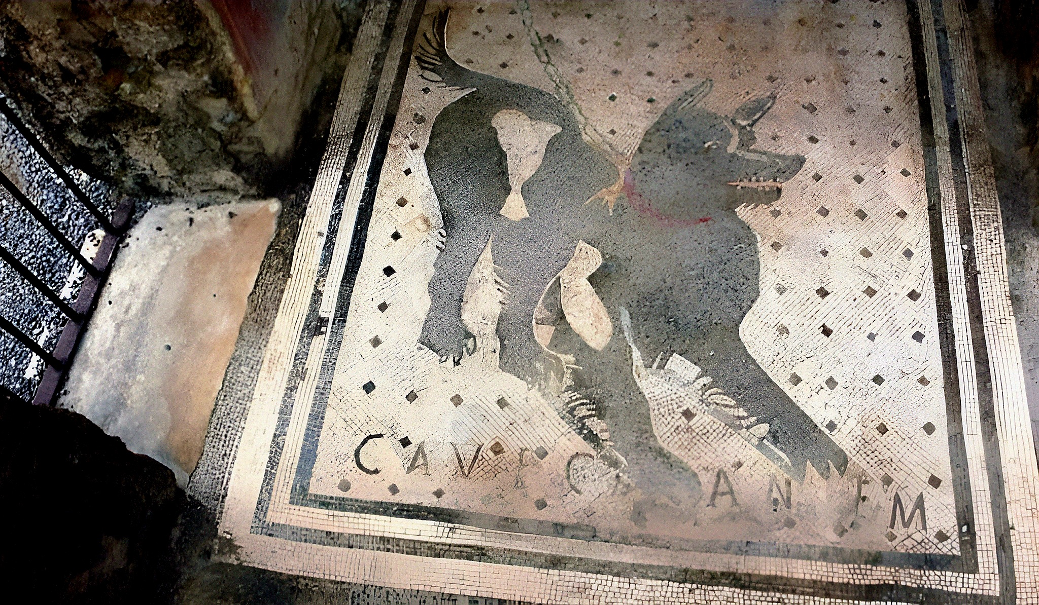 "Cave Canem" - 주의 송곳니 caveat canine - 은 개를 조심하라는 의미다.