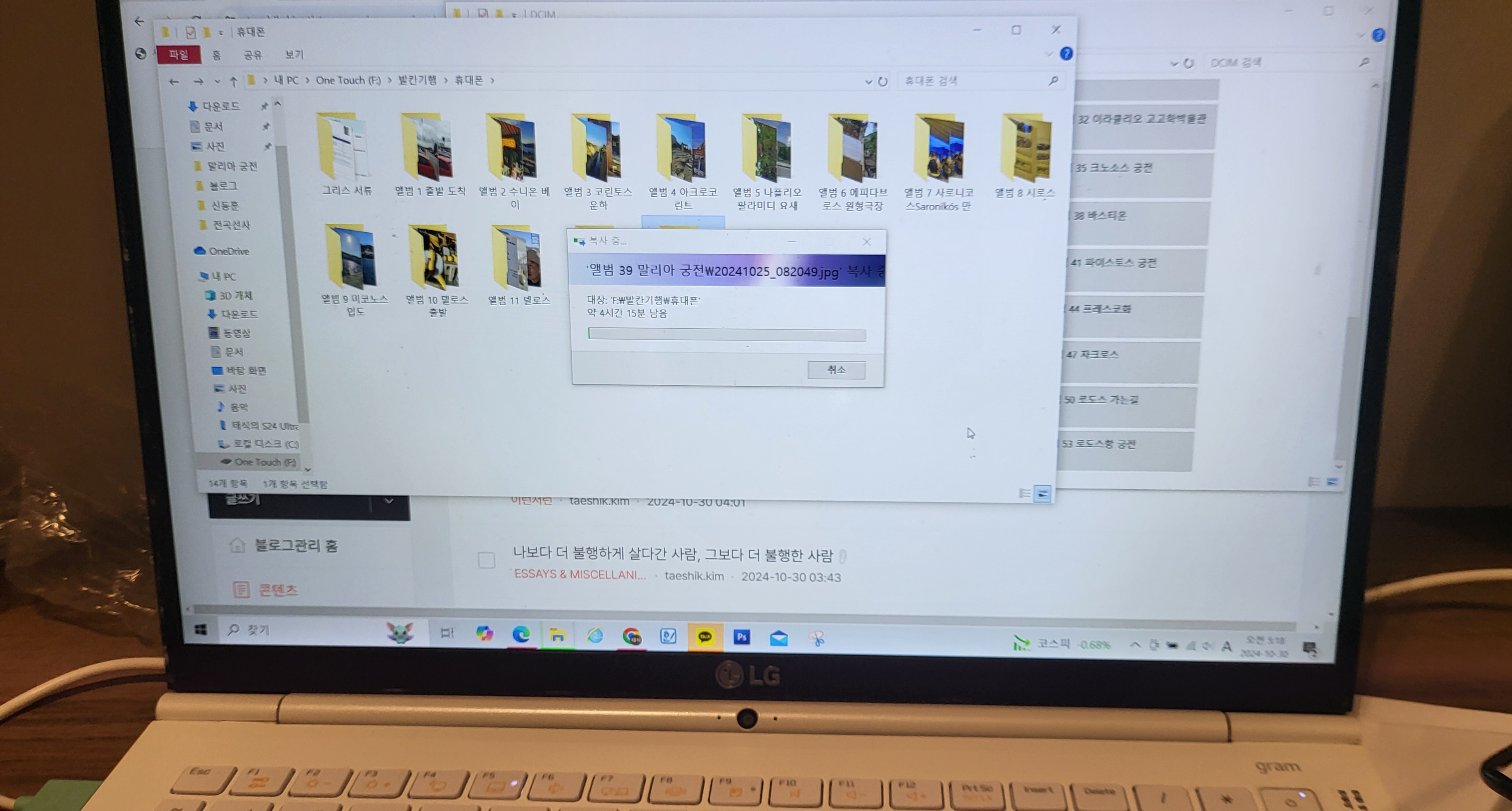 이제 스무날로 접근하는 이번 여행 촬영자료는 두 번에 걸쳐 외장하드로 옮기는 일을 완료했지만 카메라 사진 정리는 막 끝나고 지금은 휴대폰 자료 옮기기에 들어갔다.