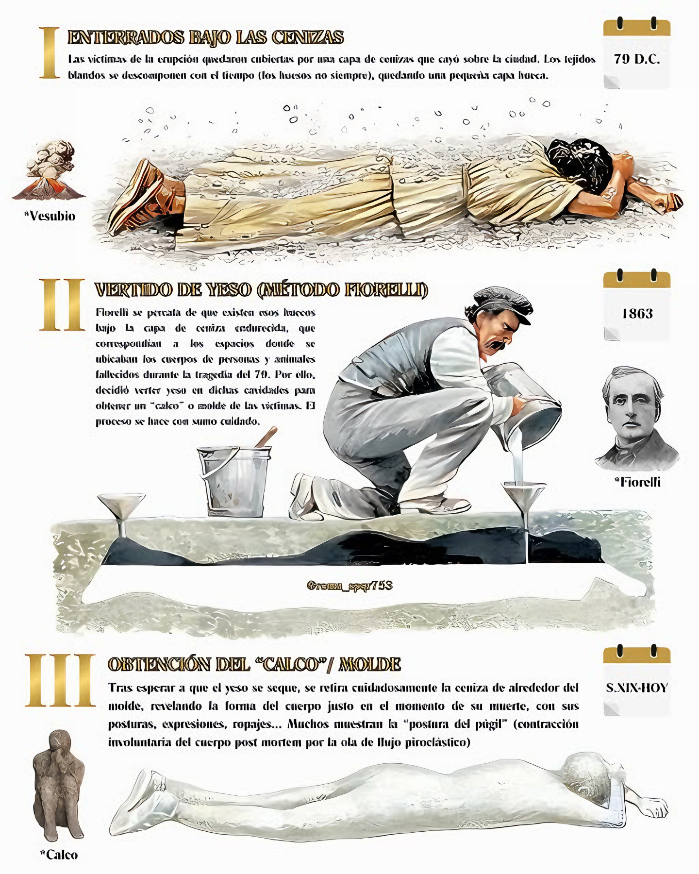 19세기에 고고학자 주세페 피오렐리Giuseppe Fiorelli는 이러한 유령 같은 인상을 복원하는 기술을 개발했다.