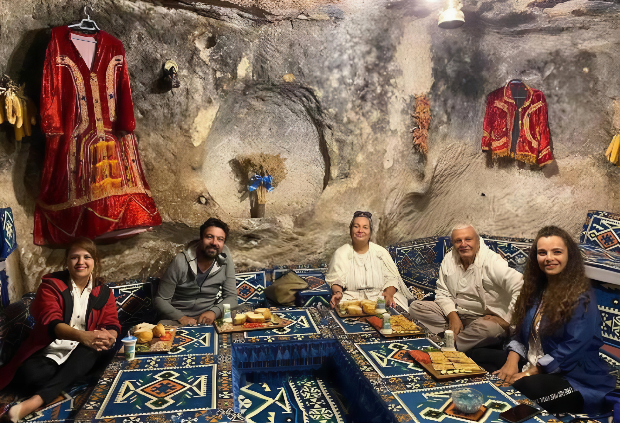 사진과 영상에는 무덤의 고대 방들이 현대적인 편의 시설과 돌에 직접 부착된 장식용품으로 개조된 모습이 담겼다.
