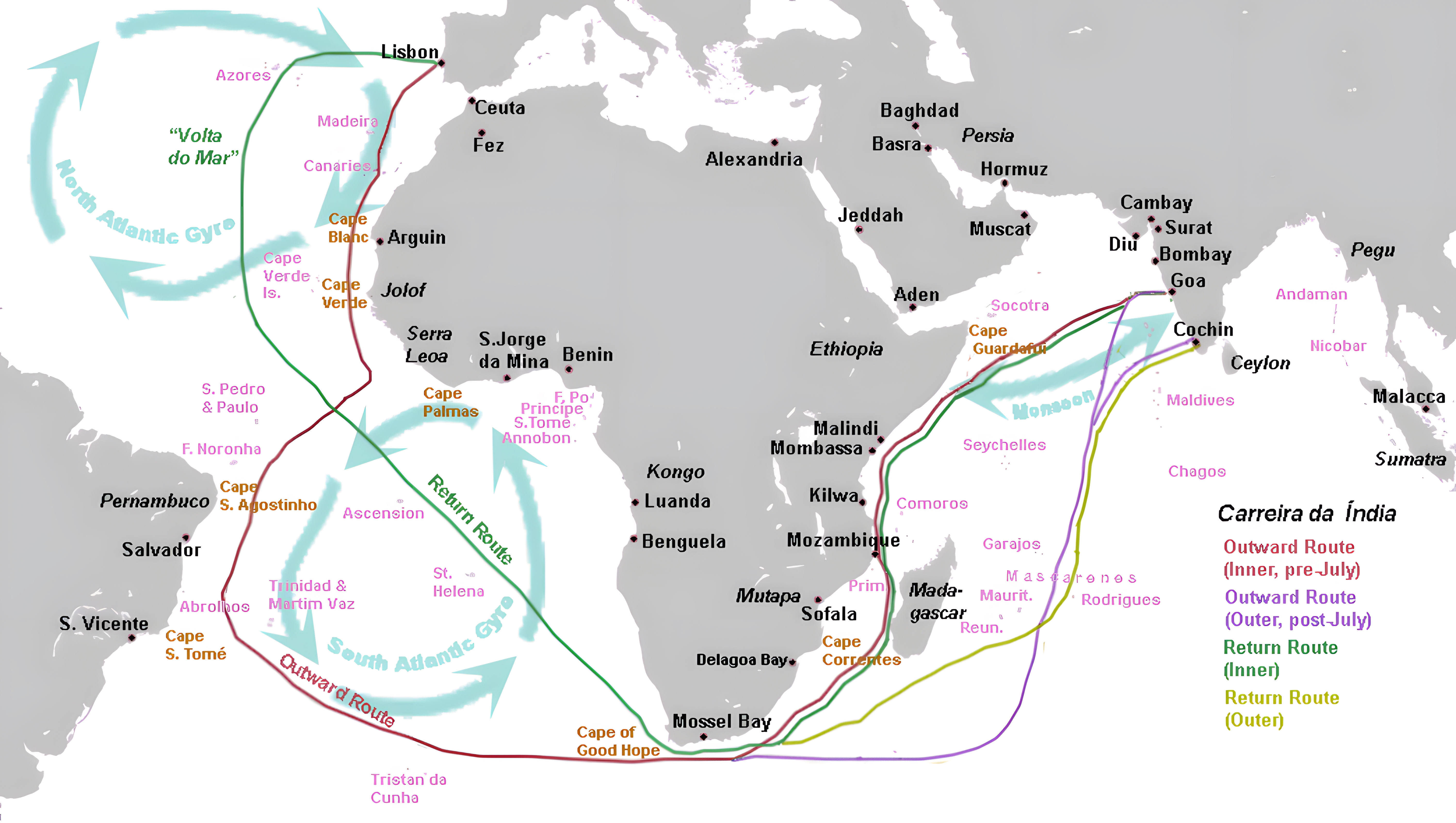 물론 이런 개척 뒤에는 그 직전 바르톨로메우 디아스Bartolomeu Dias가 1488년 희망봉을 발견한 발판이 있었다.