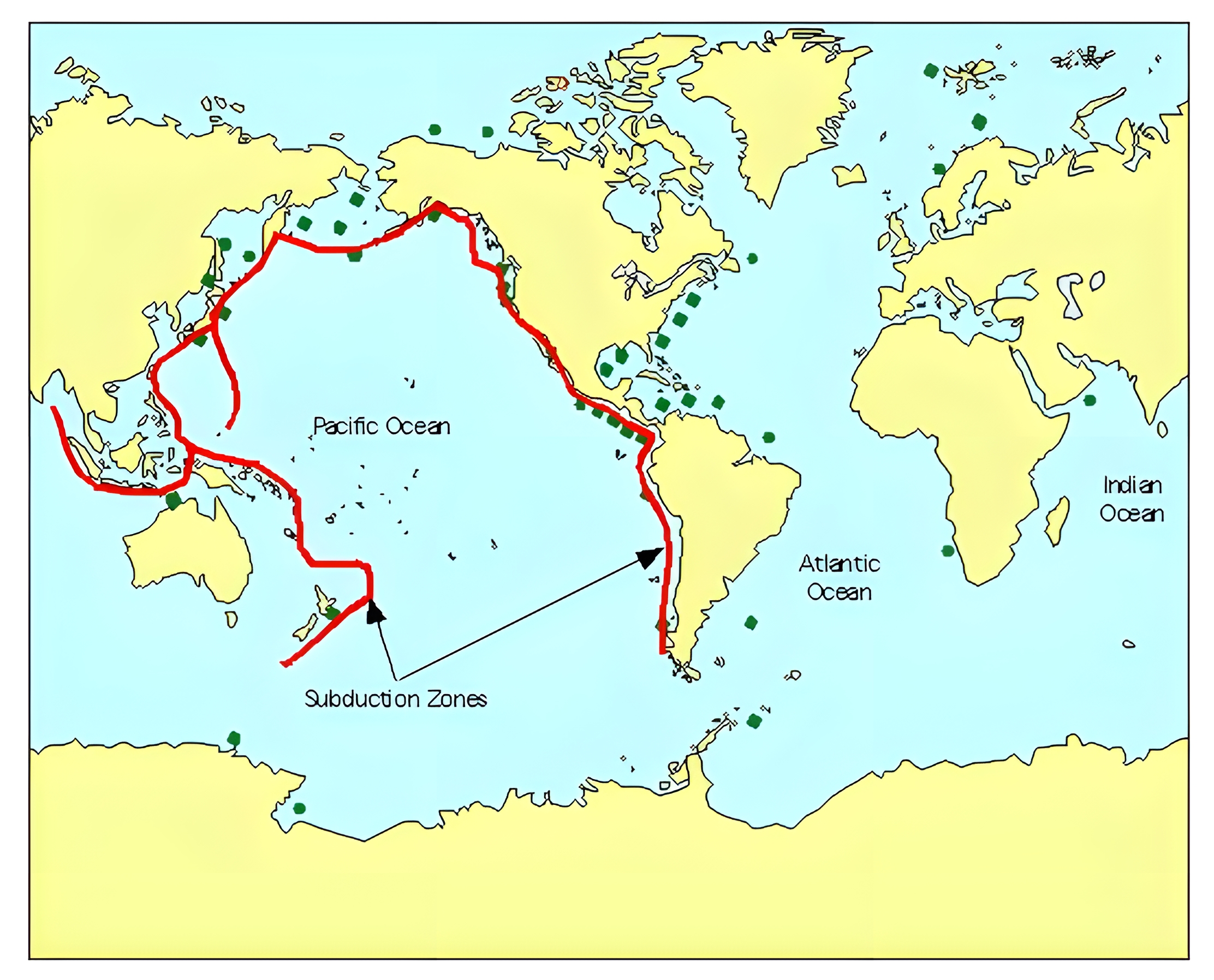 내가 어린 시절 인문지리를 배울 적에는 저 붉은 라인이 화산 빈발지구로 배웠던 듯하다. 무슨 화산지구대인가 하는 이름이 있었던 듯하다.