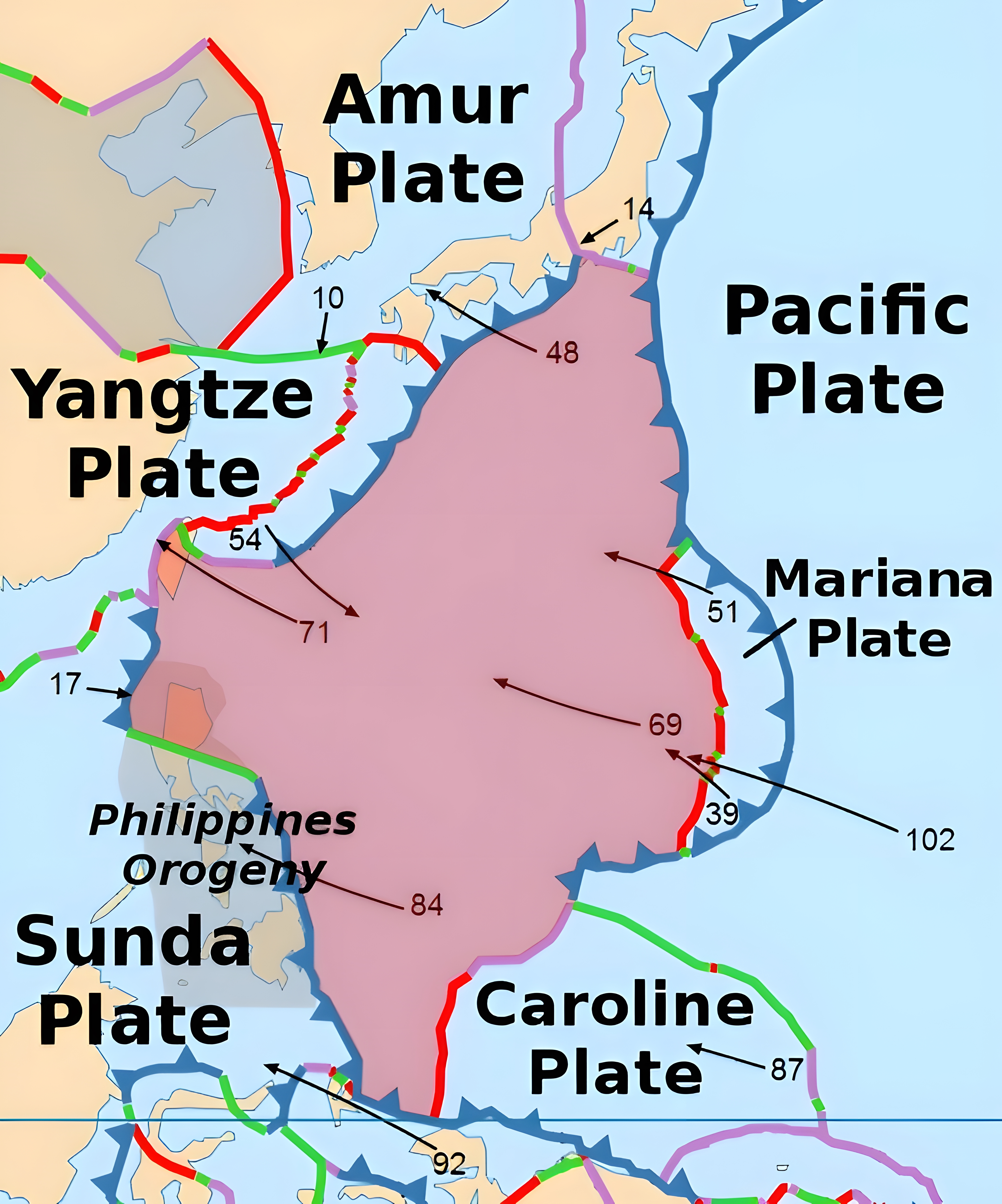 앞쪽 전체 판데기 구조와 이걸 대비할 적에 일본은 복잡해서 그네들 기준으로 동해, 그러니깐 태평양 쪽 근접 해양을 따라 각종 판데기가 만나는 접점을 이룸을 본다.