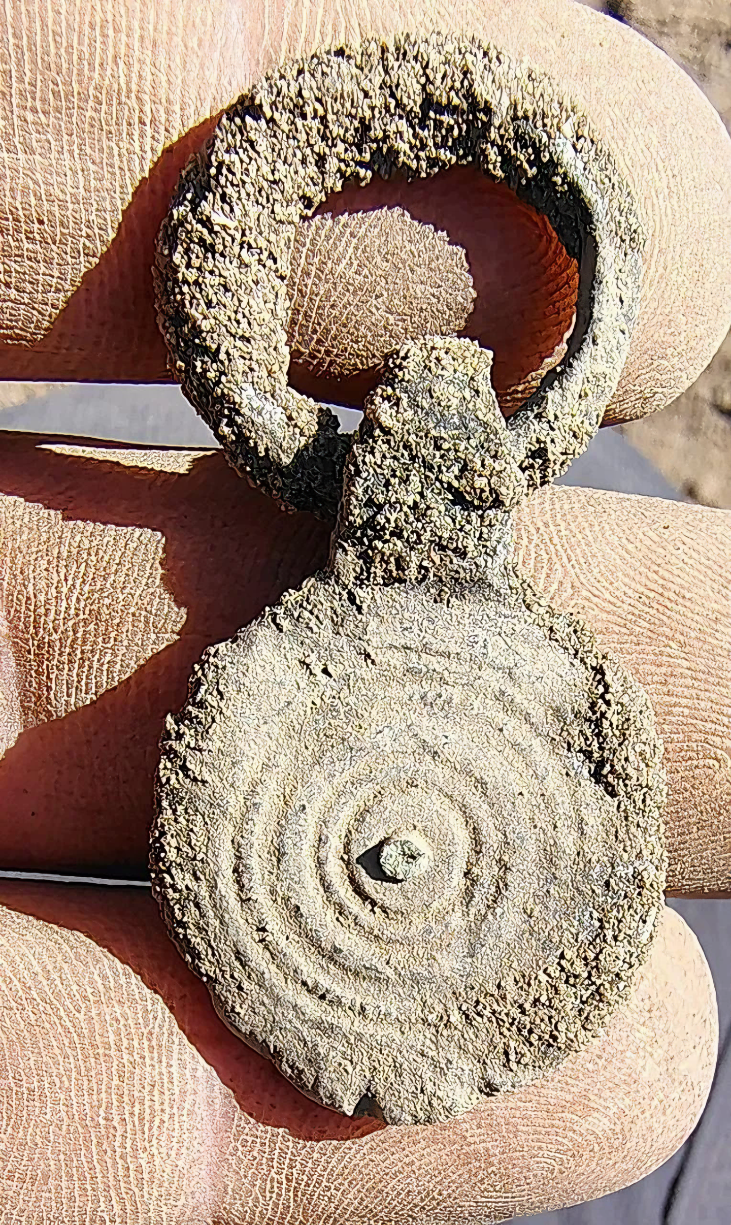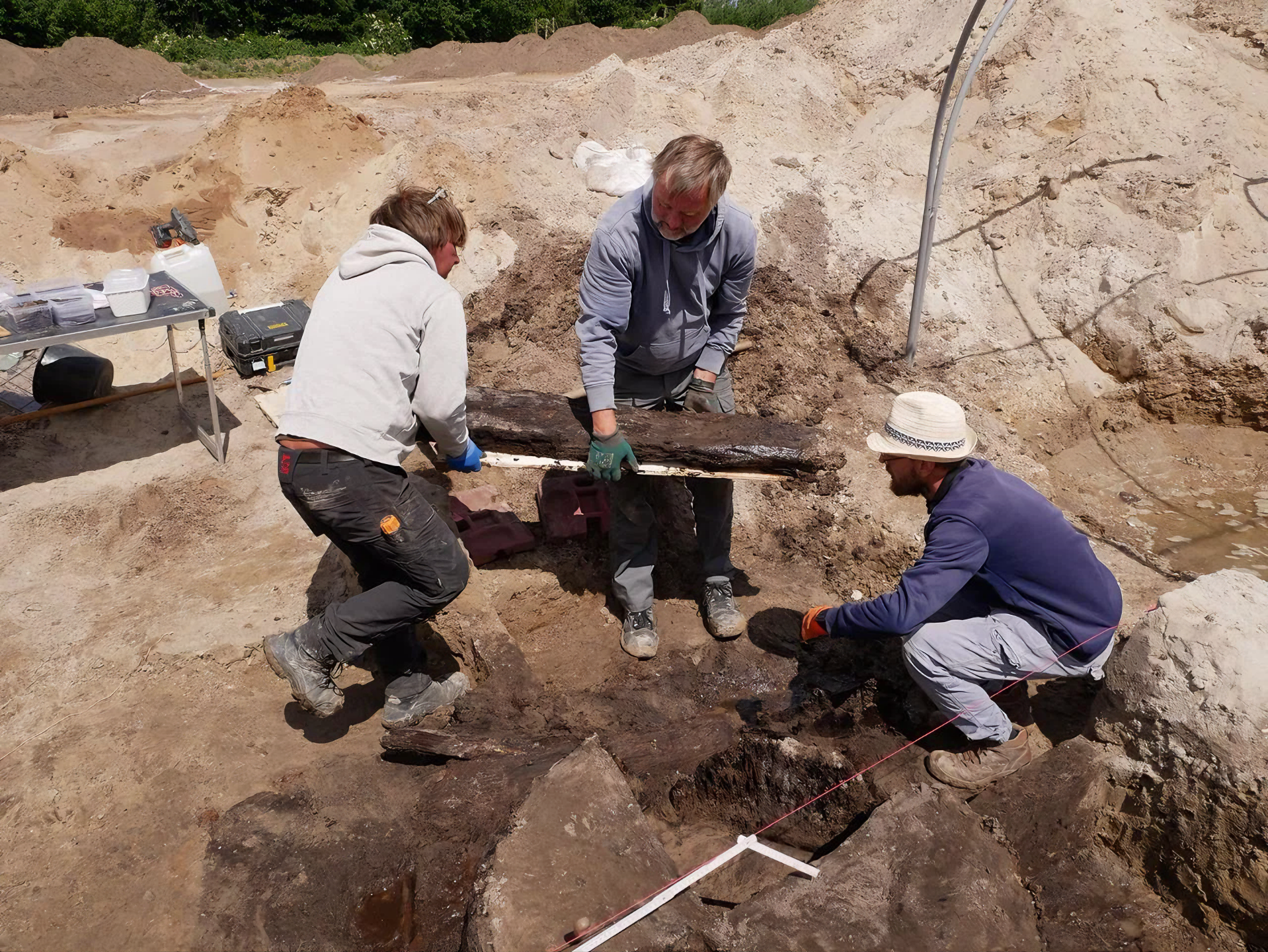 처음에는 동물의 물웅덩이로 추정되었지만, 발굴 결과 세 개 속이 빈 나무줄기로 만든 통로가 드러났다.