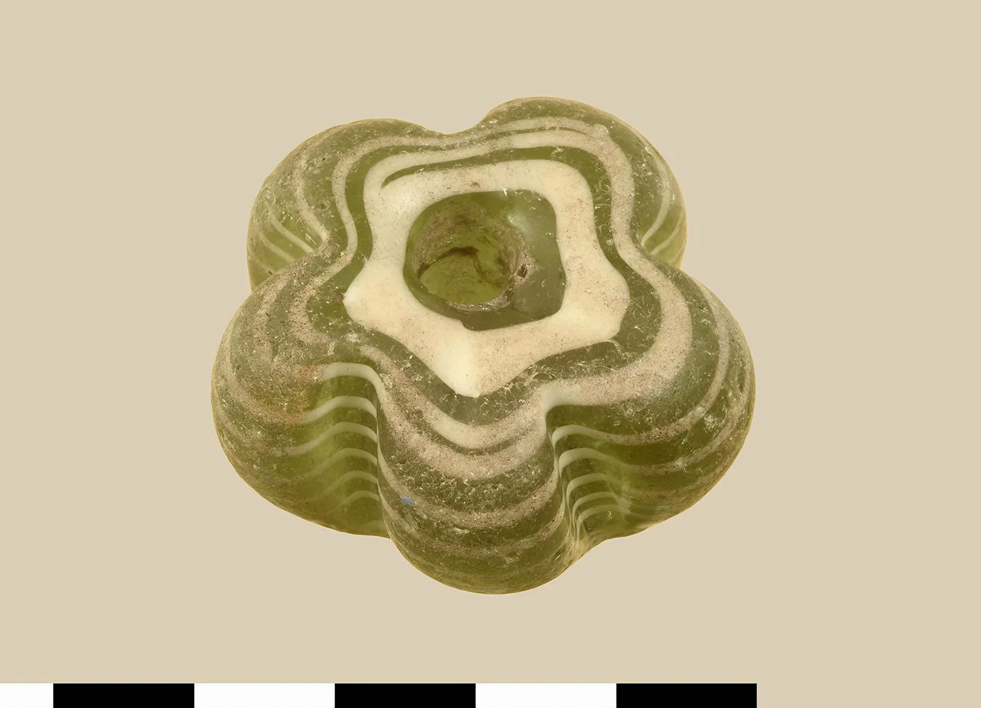이 층에서 발견된 부장품에는 투명한 것과 파란색 작은 구슬 조각 두 개와 큰 녹색 유리 구슬이 포함되는데, 이는 급하게 또는 상징적인 매장 의식에서 남겨졌을 가능성이 있다.