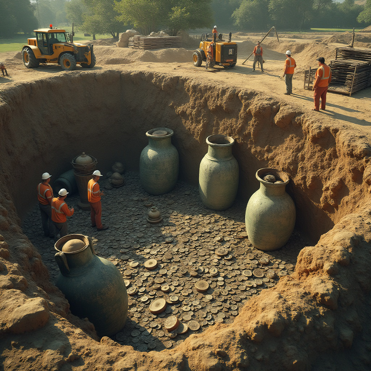 기계식 굴착기를 사용하던 노동자들은 우연히 약 1미터 깊이에 묻힌 19개 대형 세라믹 암포라 안에 숨은 로마 동전들을 발견했다.