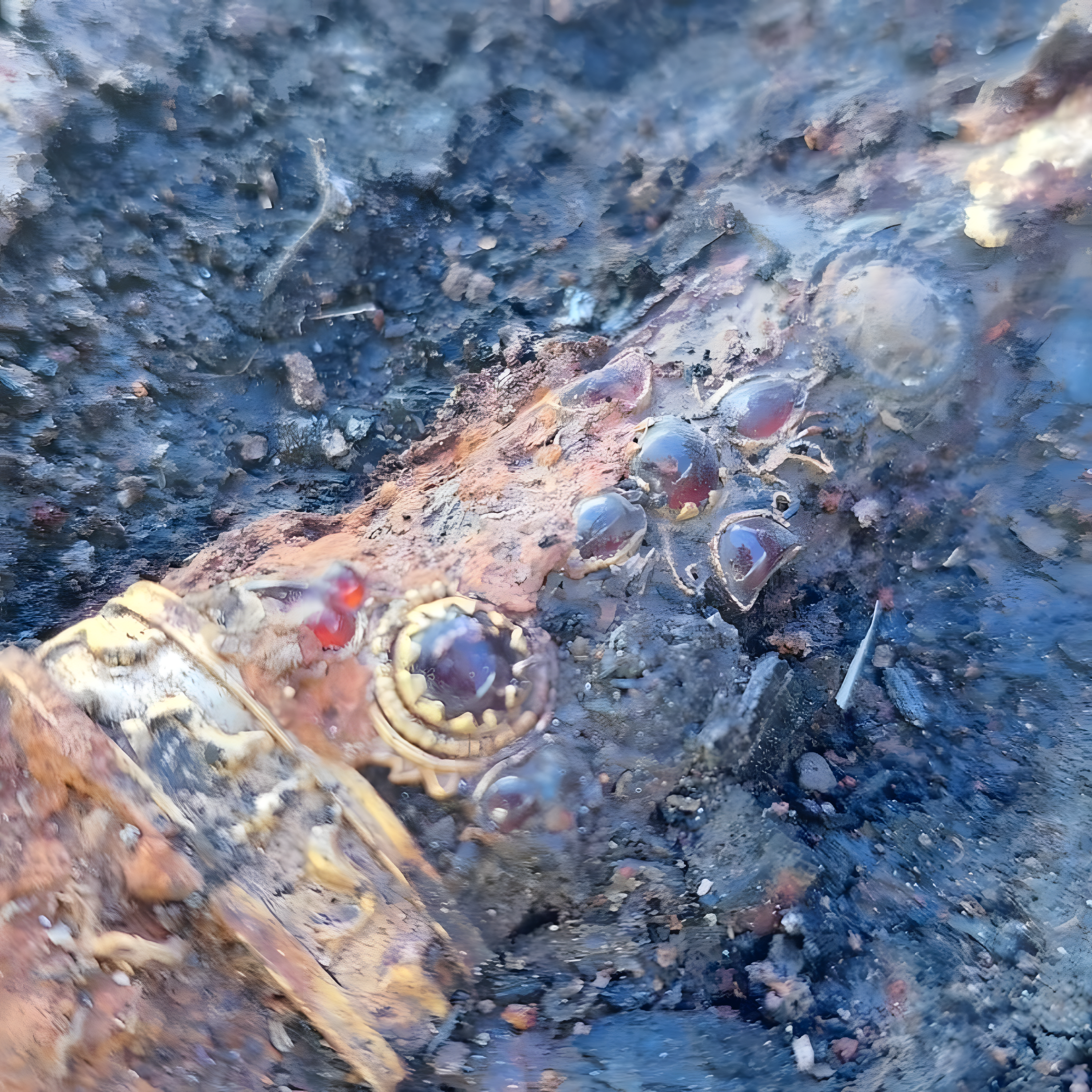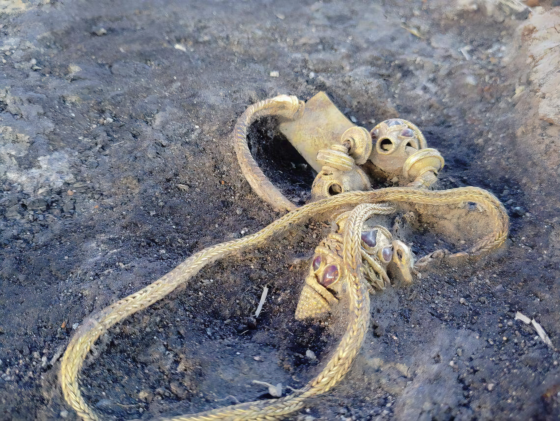 발견된 품목으로는 금 목걸이, 금 왕관gold diadem, 금 반지, 금 요소로 장식된 칼, 준보석semi-precious stones 등이 있다.