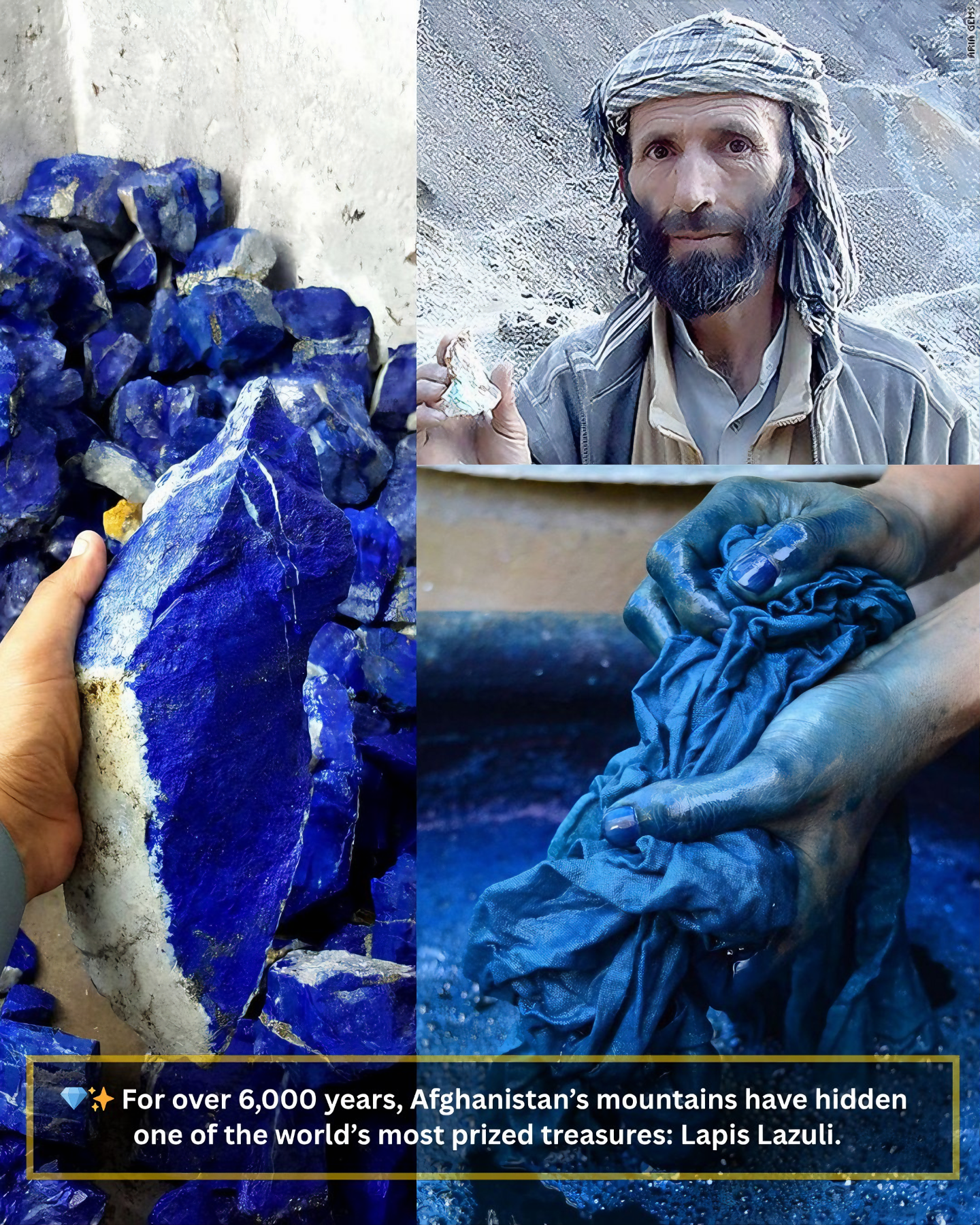 6,000년이 넘는 세월 동안 아프가니스탄 산들에서는 세계에서 가장 귀중한 보물 중 하나인 라피스 라줄리Lapis Lazuli, 곧 청금석이라 번역하기도 하는 광석이 숨어 있었다.