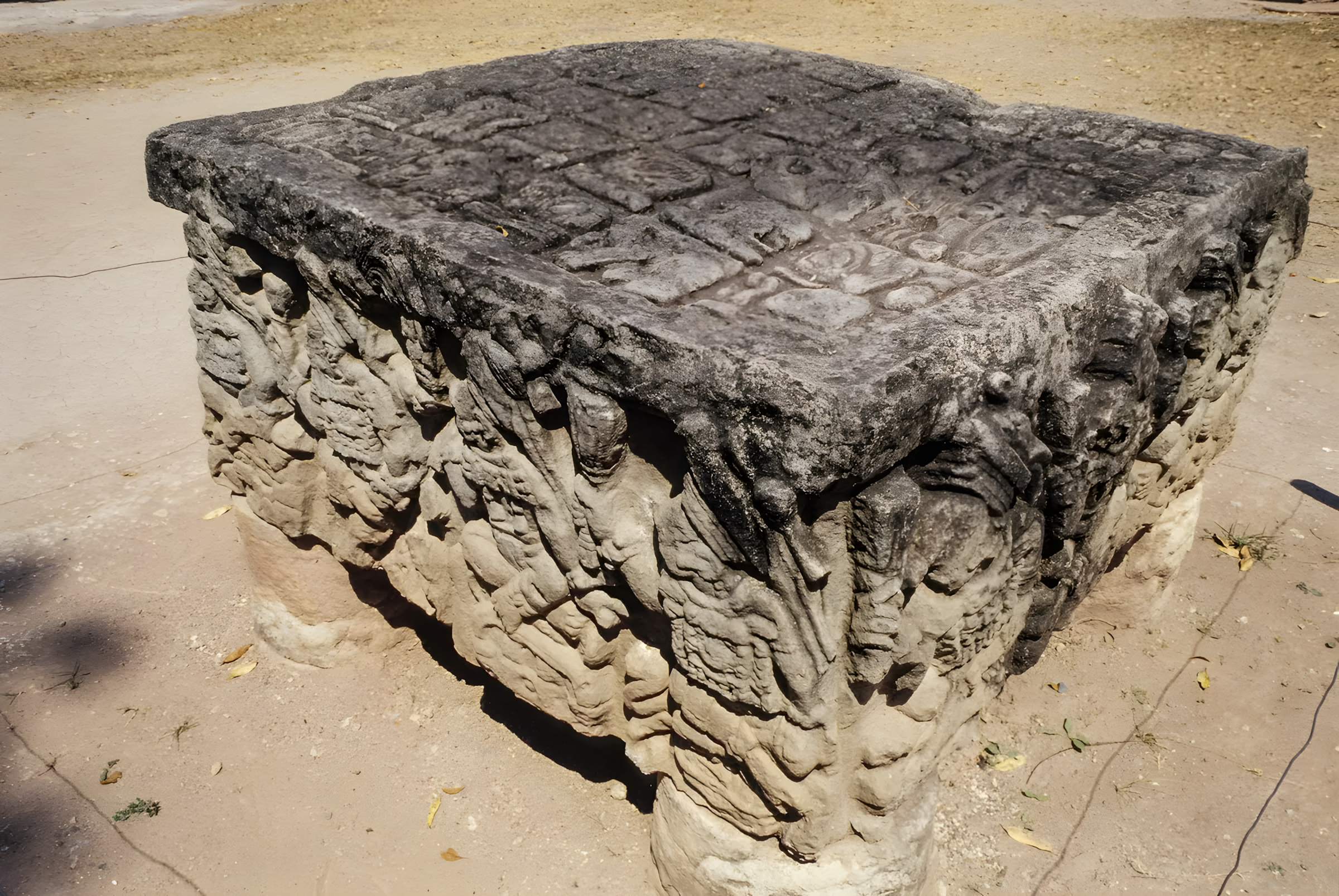 정교하게 조각된 알타르 Q 네 면에는 총 16명 코판 통치자가 묘사되어 있으며, 각 통치자는 특정한 손 모양을 하고 있고 상형 문자도 새겨져 있다.