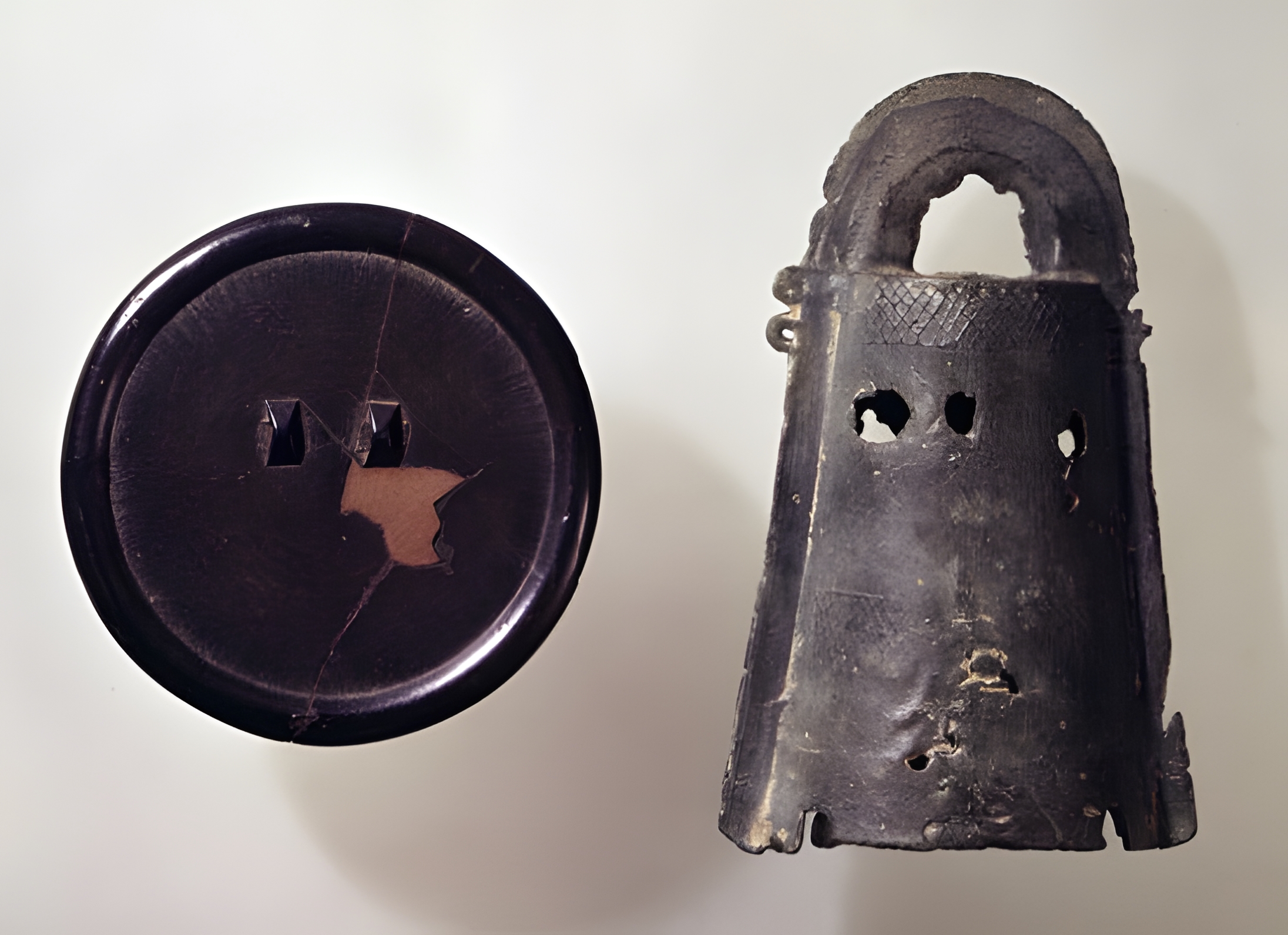 한편 동경은 중국식 거울과는 달리 한쪽으로 몰린 위치에 2개 북 모양 손잡이가 나란히 붙어 있다.