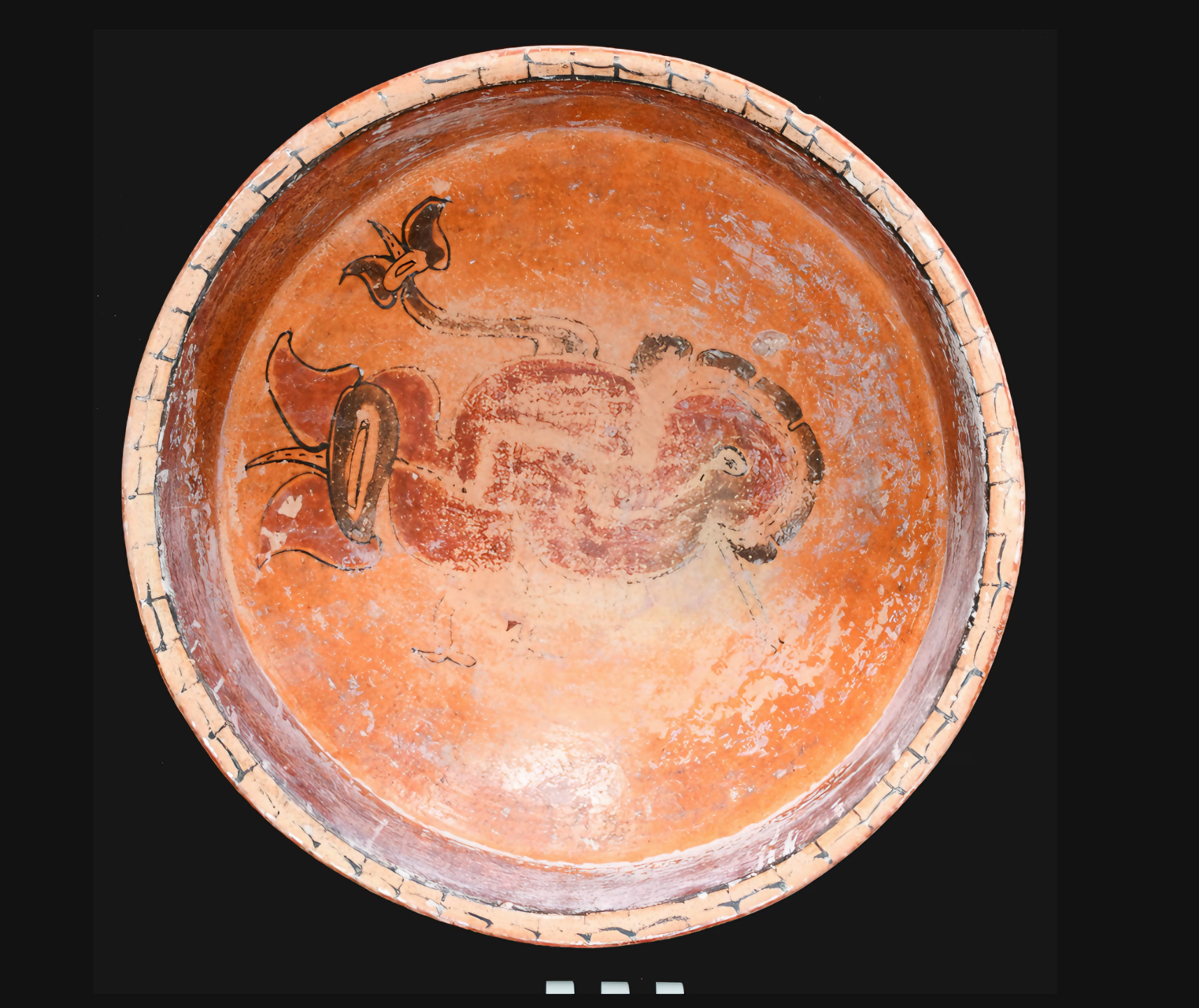 성명에 따르면, 한 도기 그릇에는 창을 든 마야 통치자가 제물을 받는 모습이, 다른 도기 그릇에는 마야 상인의 신인 에크 추아Ek Chuah가 제물에 둘러싸인 모습이 묘사된다.
