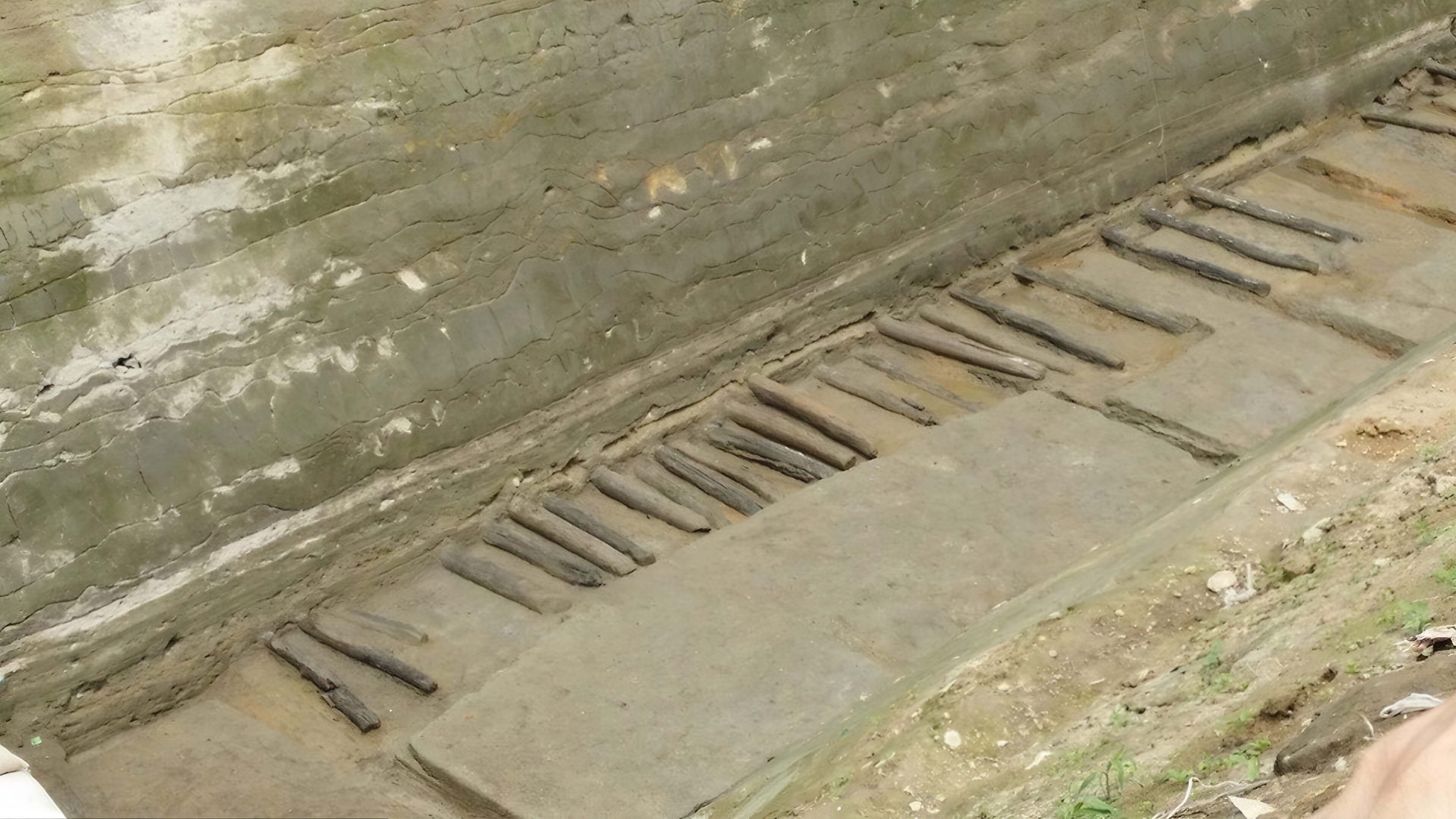 도로유구 윗층에서는 수레자국이 남아있었다.