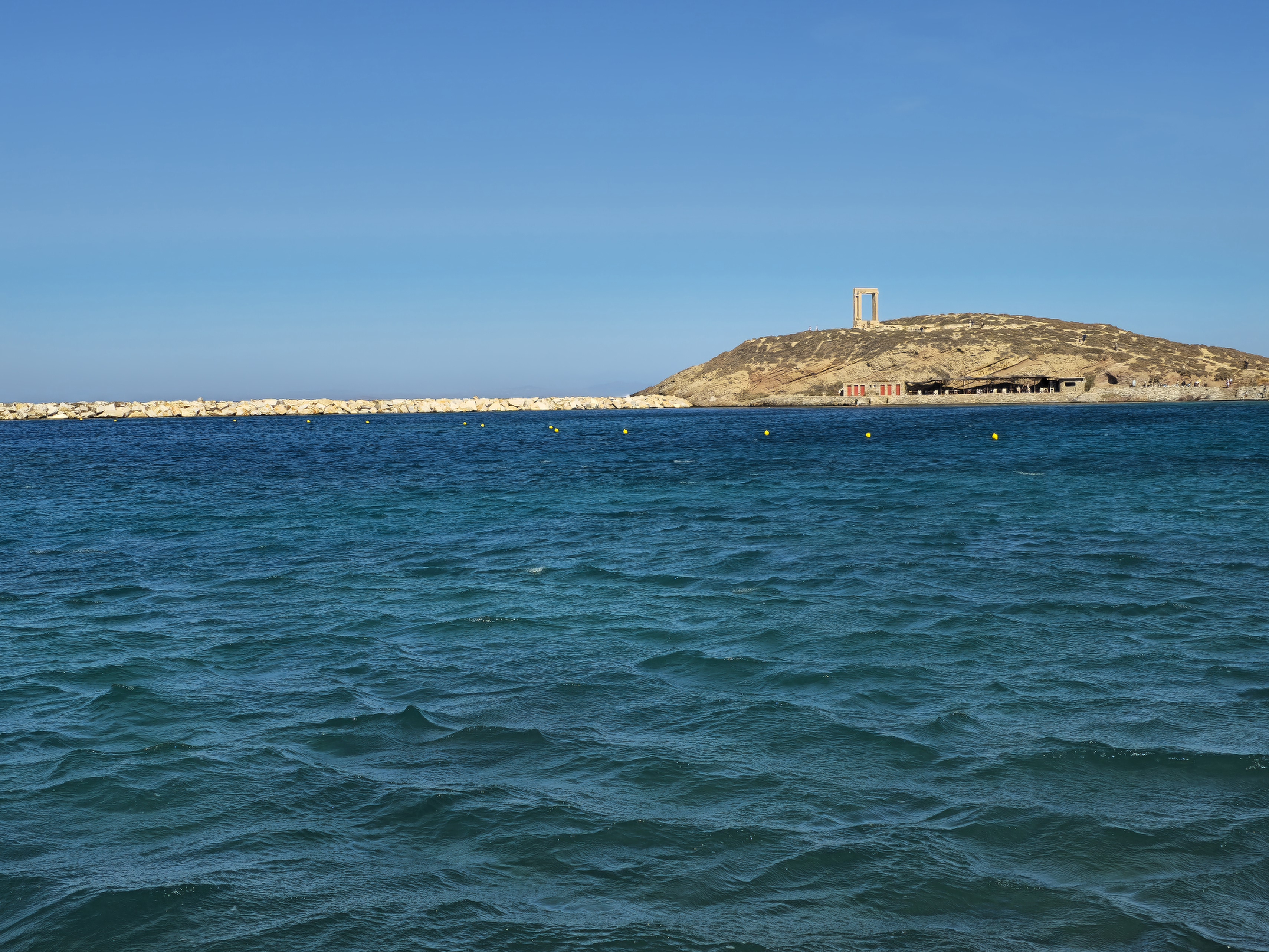 미코노스Mykonos를 출발하는 크루즈선 이용해 대략 한 시간 정도 남하해 낙소스 항에 닿으려니, 읍내가 한 눈에 들어오는데, 그에 딸린 작은 섬 하나가 있어, 방죽으로 연결해 놓았으니,