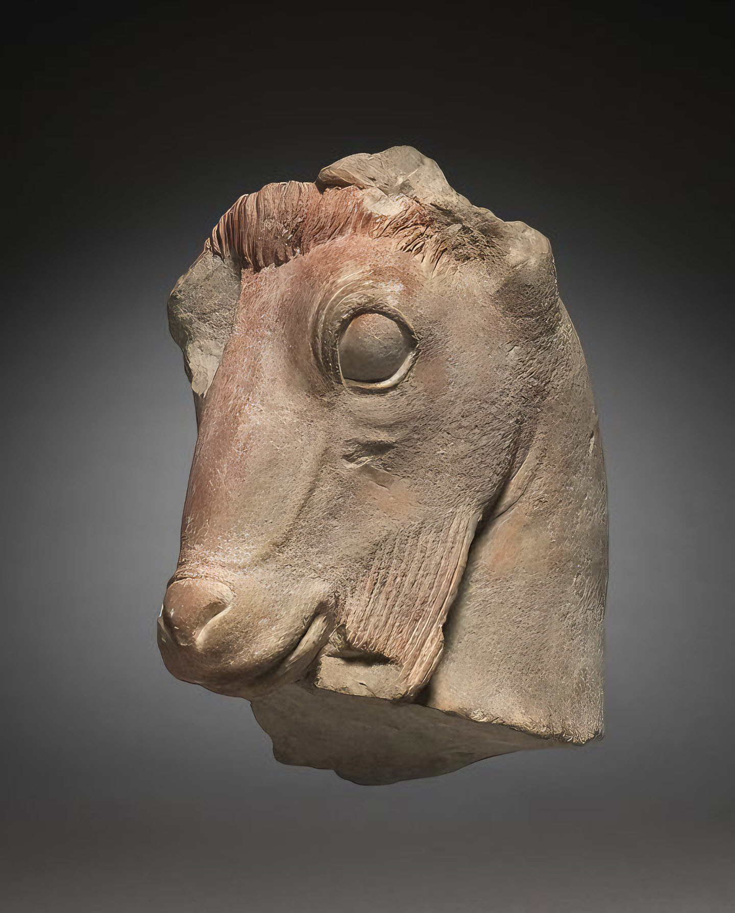 석회암으로 조각한 이 파편은 처음에는 말 머리라 했지만 나중에 수염 때문에 염소로 재해석되었다.