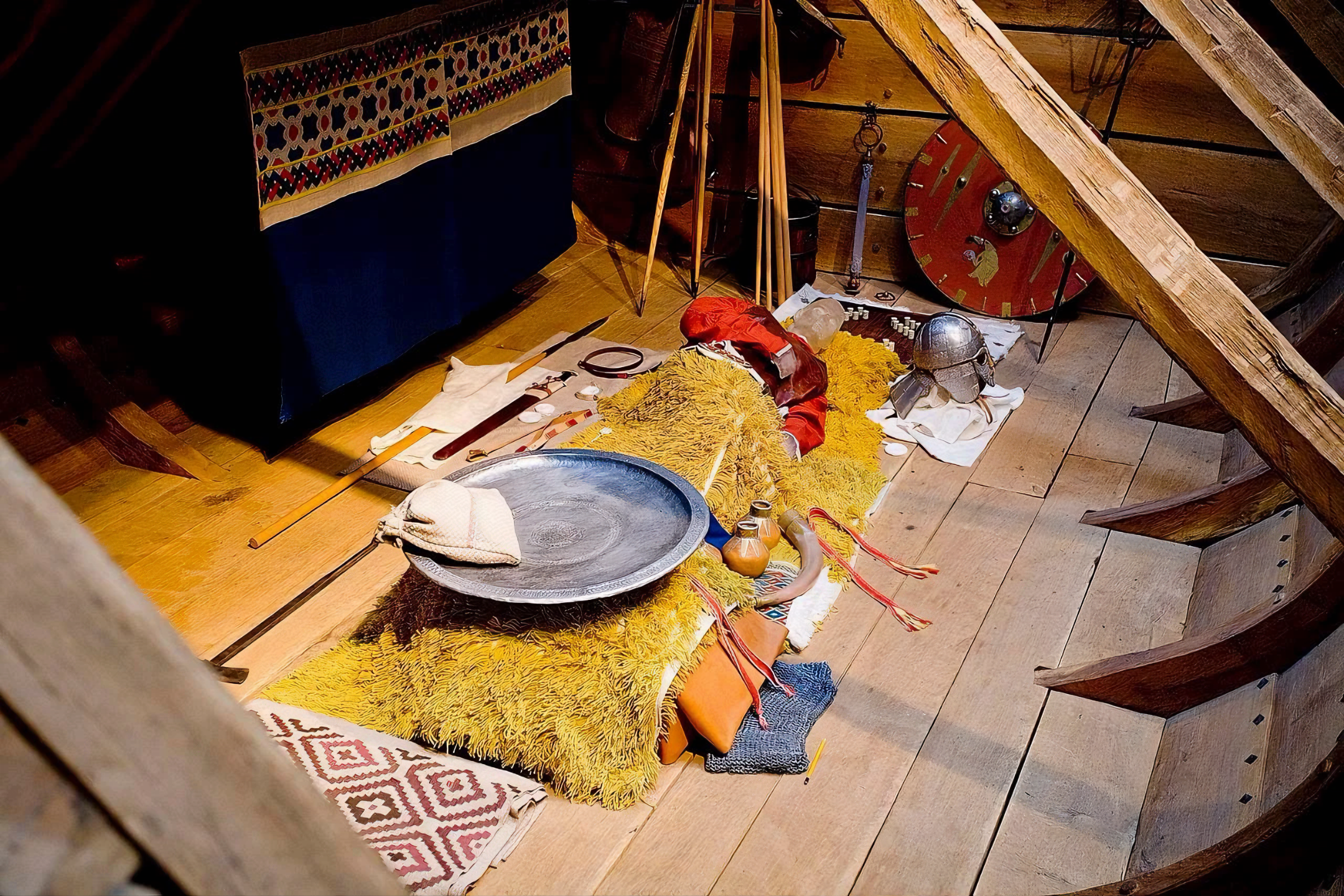 유물 중에는 무기, 보석, 은식기, 직물 등이 포함되어 있어 그곳에 묻힌 사람들 높은 지위를 보여준다.