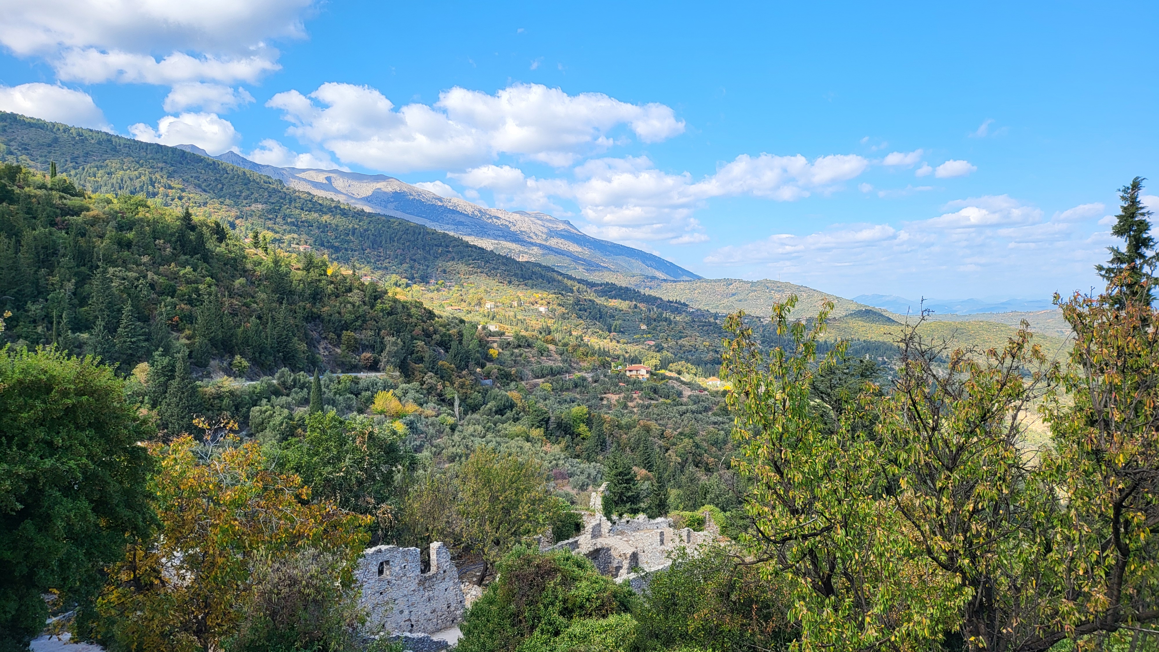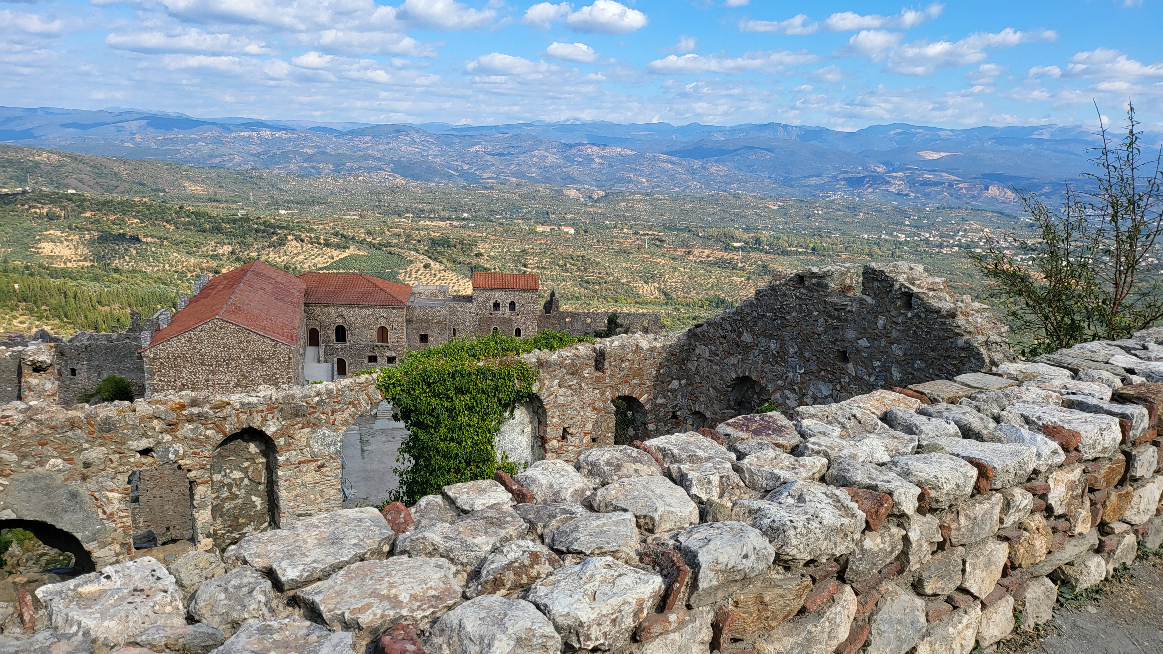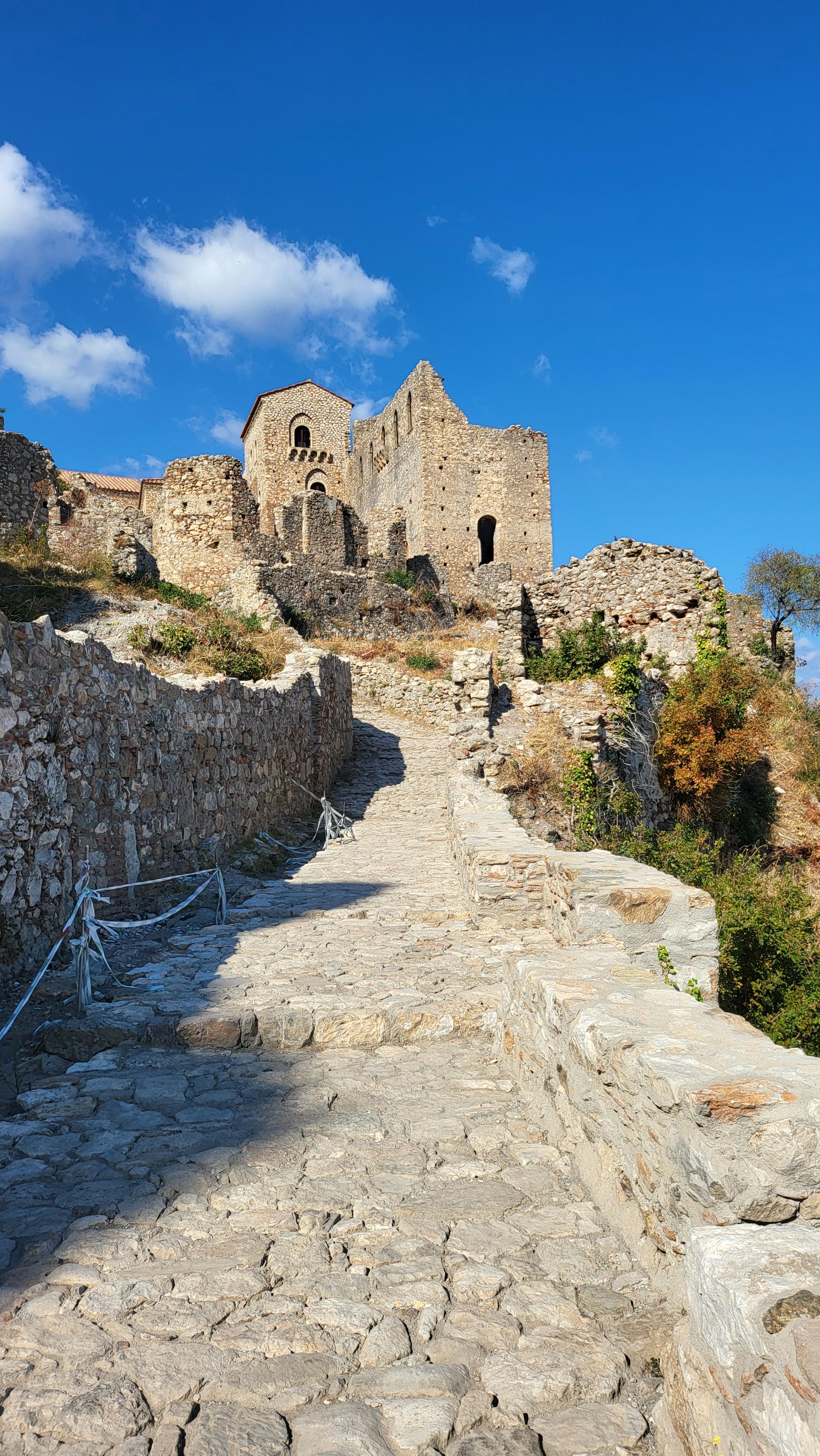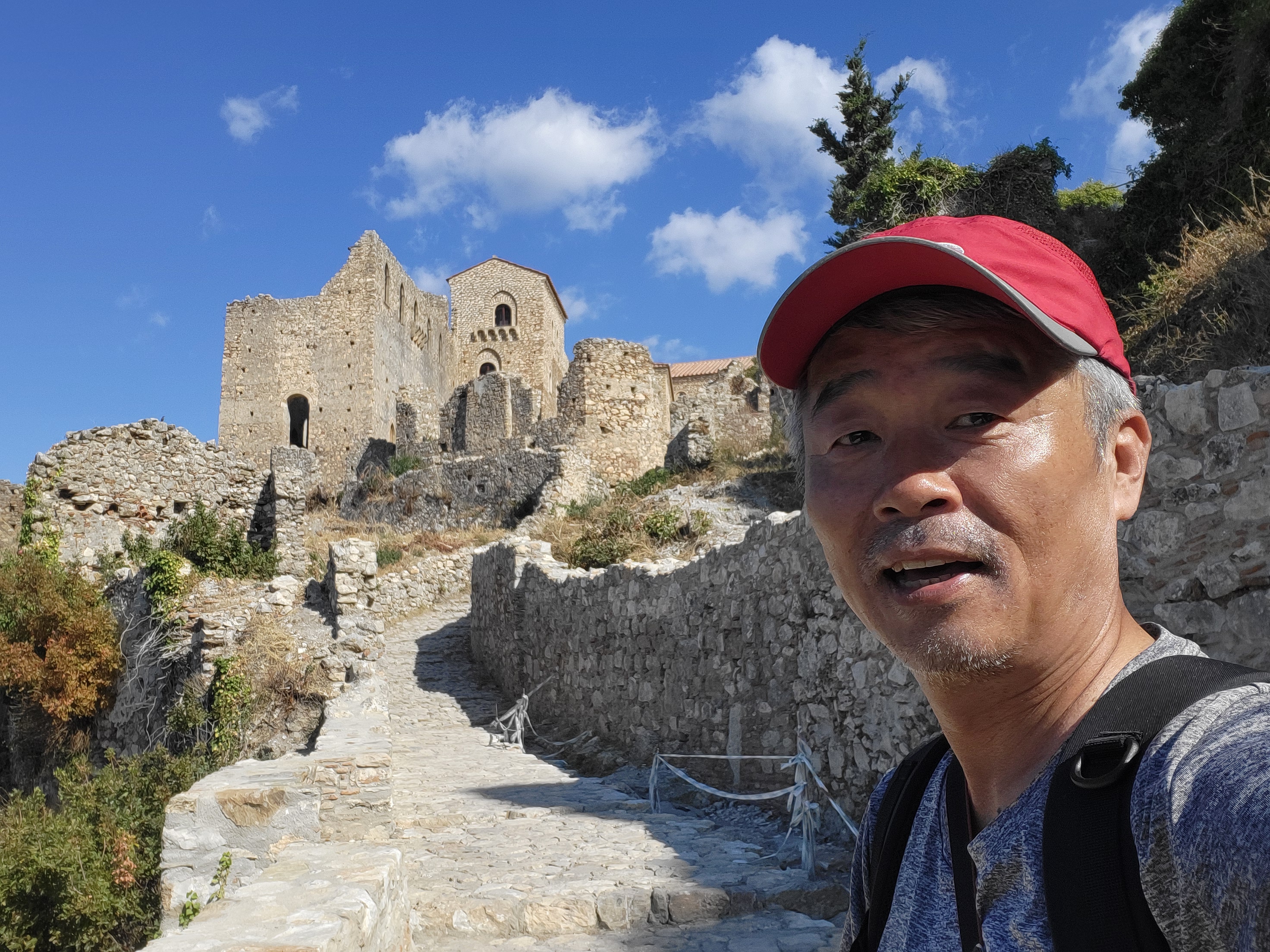 나는 지금 미스트라스 캐슬 정상 아래서 이 글을 쓴다.