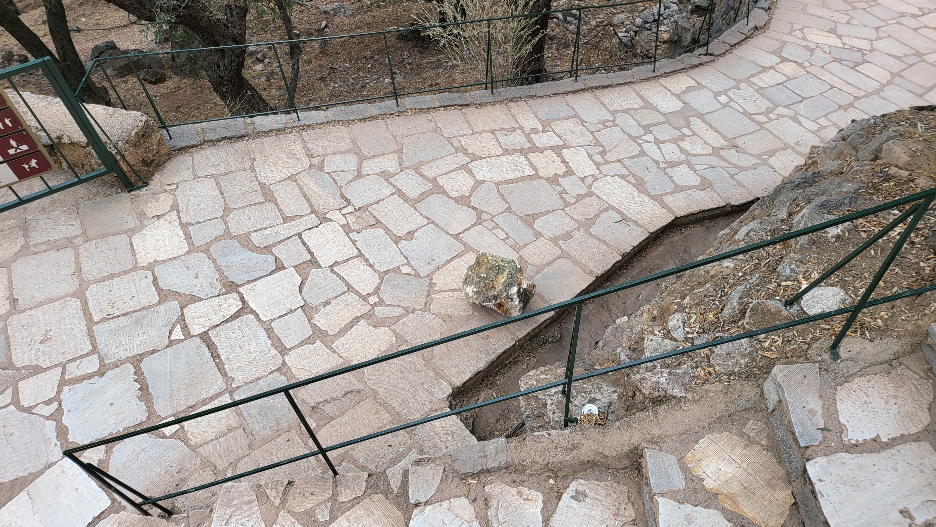 2주 전이다. 산에서 돌덩이가 굴러 떨어져서 도로를 덮치고 유적을 들이쳤다. (이곳 유적 관리 총책임자가) 관람객 안전과 차량 안전을 위해 폐쇄를 결정했다. 안전진단 전문가들을 불렀다. 어찌 될 지는 모르겠다.