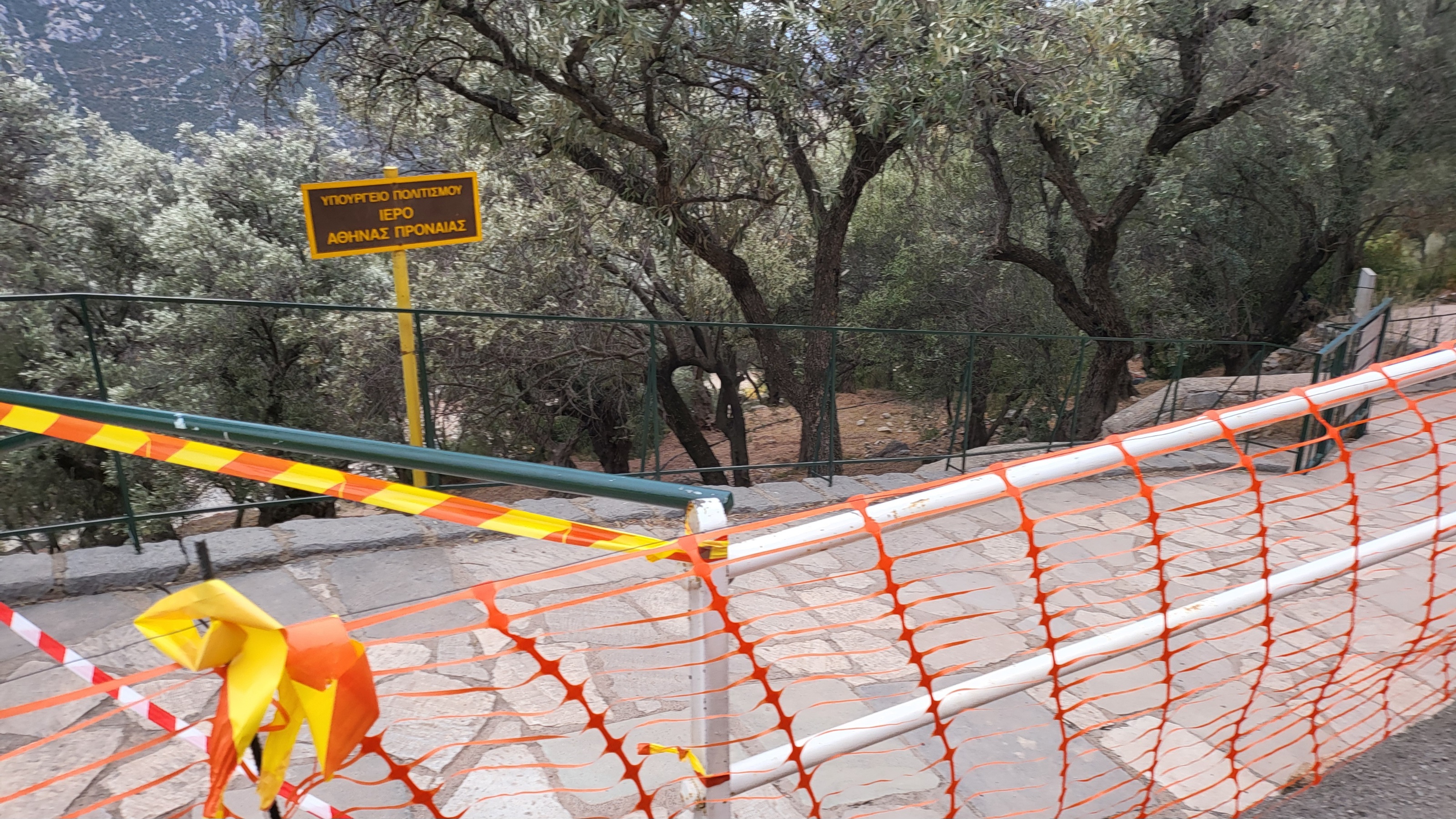 2주 전이다. 산에서 돌덩이가 굴러 떨어져서 도로를 덮치고 유적을 들이쳤다. (이곳 유적 관리 총책임자가) 관람객 안전과 차량 안전을 위해 폐쇄를 결정했다. 안전진단 전문가들을 불렀다. 어찌 될 지는 모르겠다.