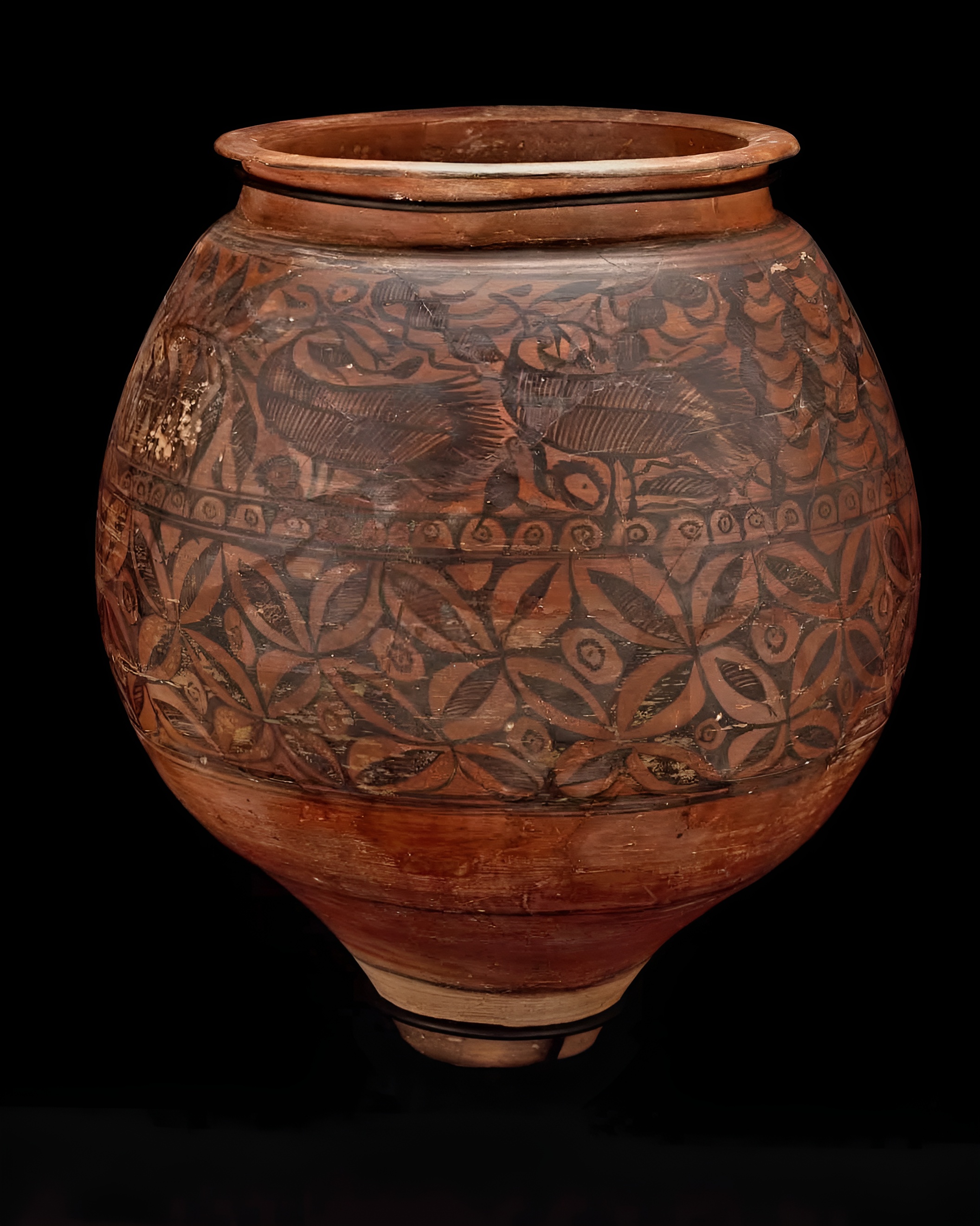 적어도 4,000년은 된 새 장식 이 항아리는 인더스 계곡I ndus Valley, 특히 오늘날 파키스탄 찬후다로Chanhu-Daro에서 출토했다.