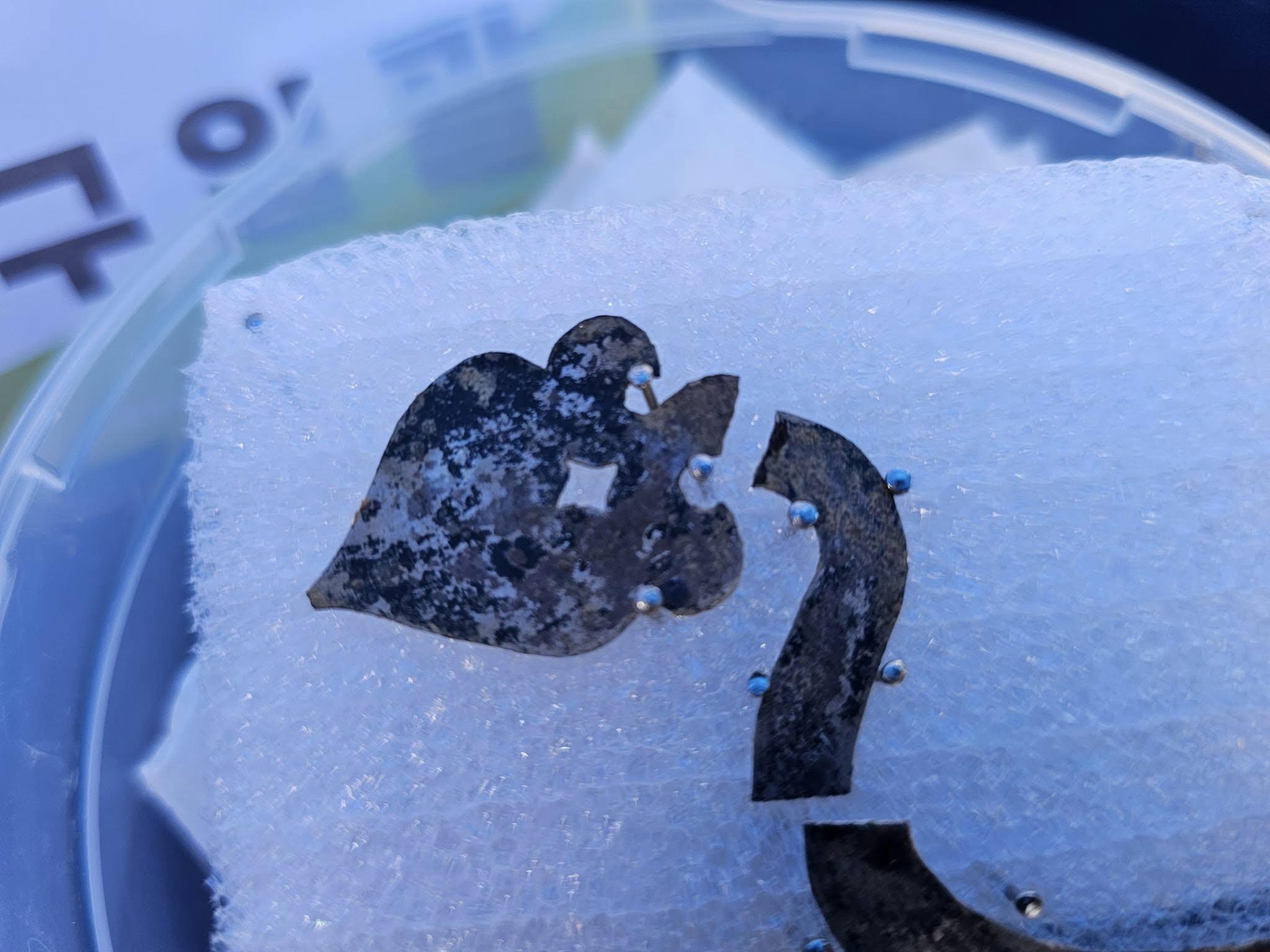 교구는 한쪽 변이 타원형으로 돌출된 고리형태이며, 그 끝단 연결구멍을 철제 못으로 연결한 흔적이 확인된다.