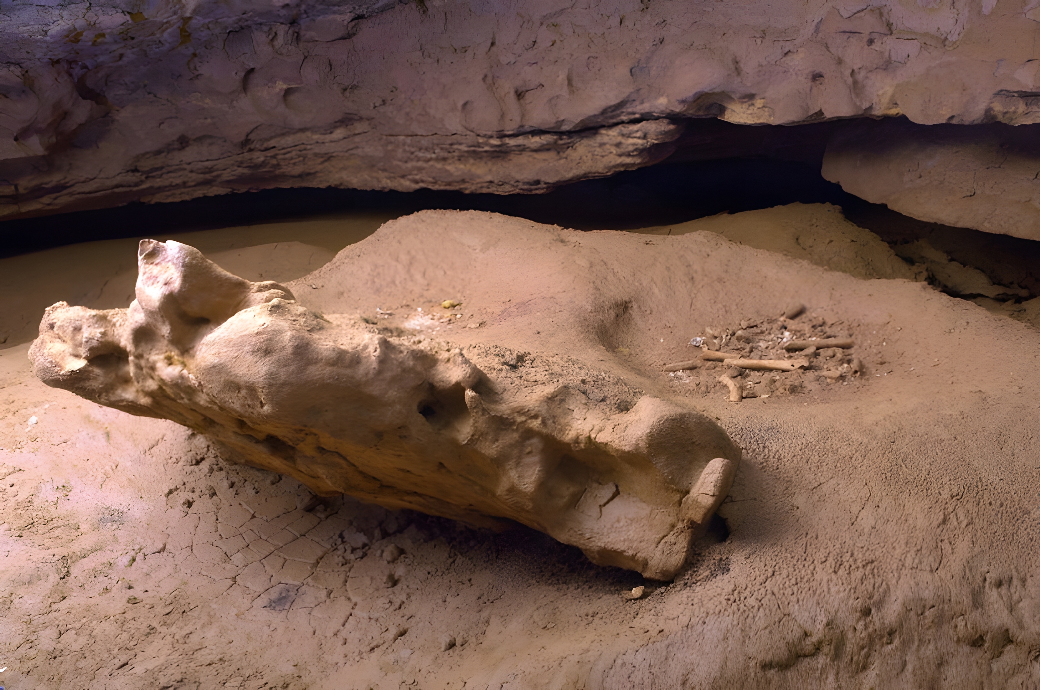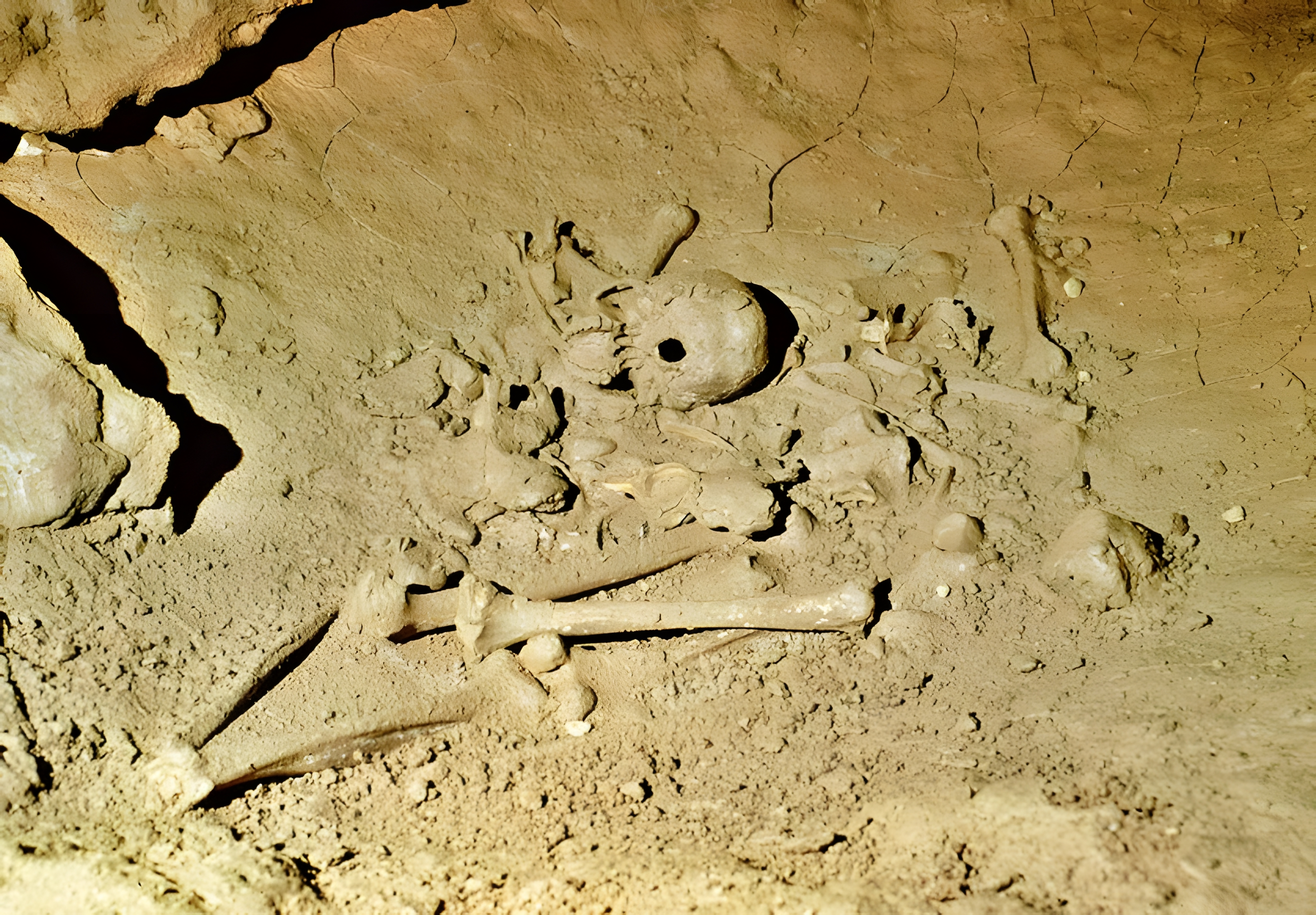 최소 5명(성인 4명과 청소년 1명)이 포함된 동굴의 인간 유해는 구석기 시대 유럽에서 몇 안 되는 두정엽parietal 작업과 인간 매장의 연관성을 나타낸다.