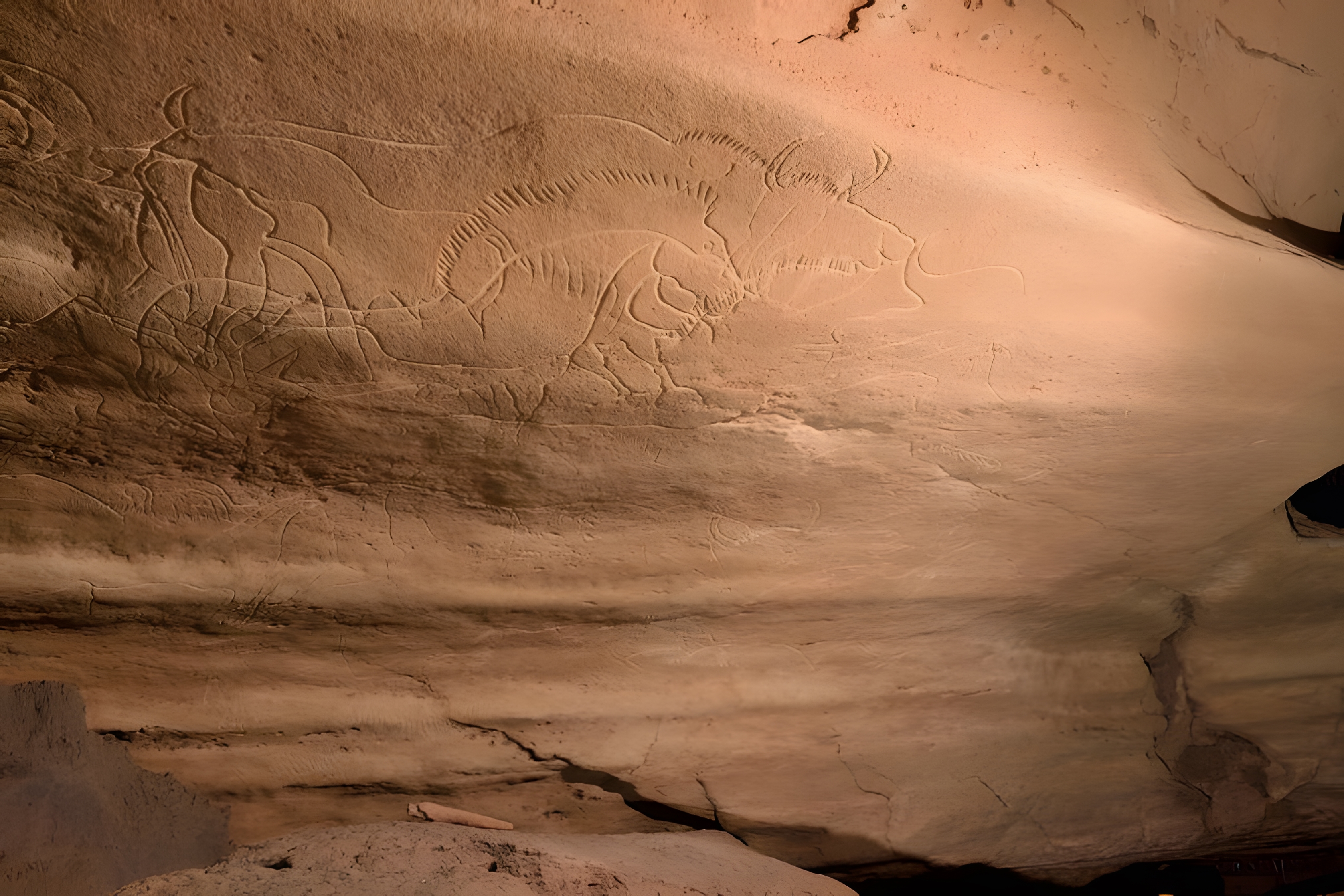 여기에는 들소bison, 말, 매머드, 코뿔소rhinoceroses, 아이벡스ibex, 새, 수수께끼 같은 인물 조각을 포함하여 150개가 넘는 구석기 시대 미술품이 포함되어 있으며,
