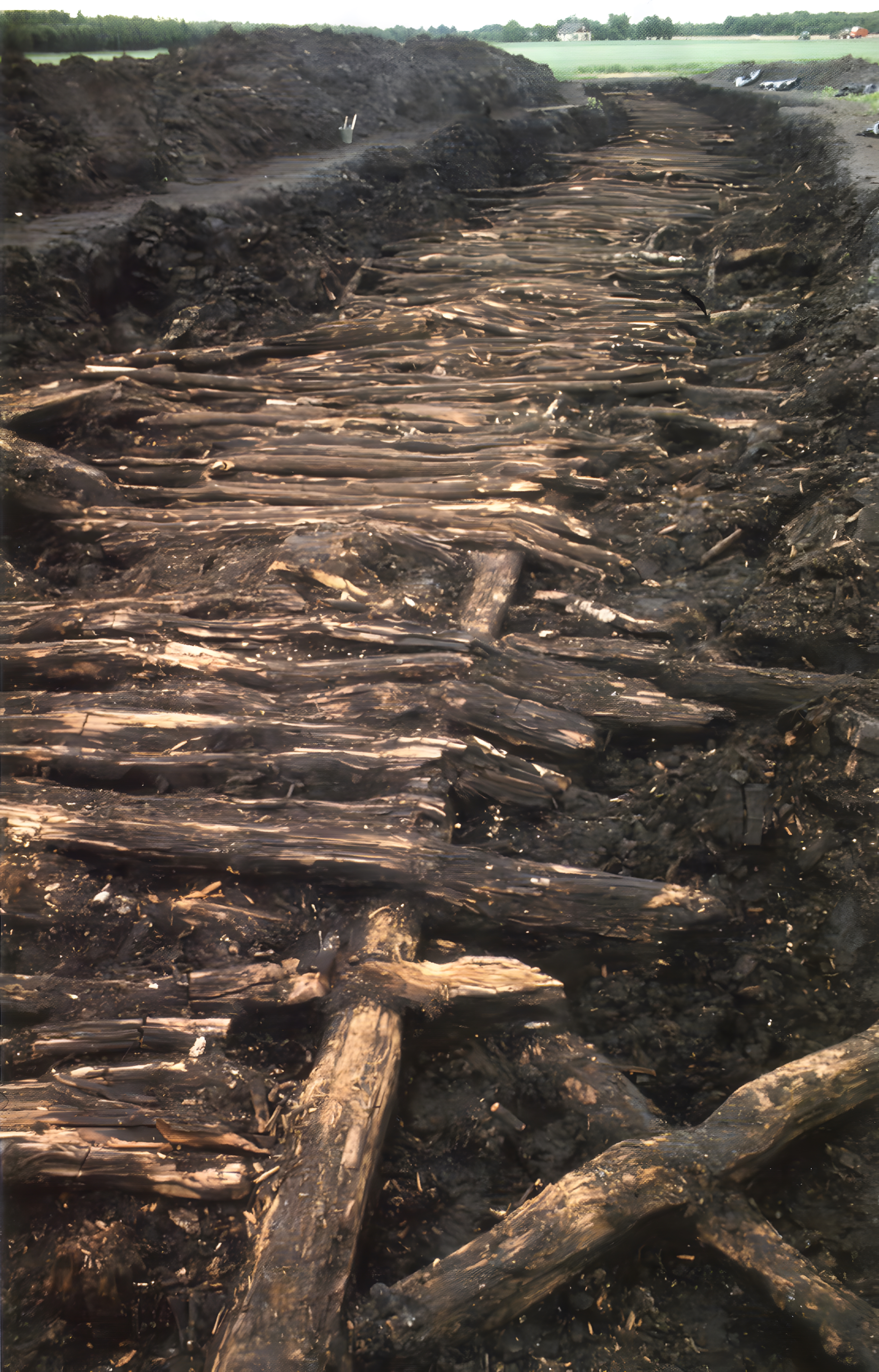 네덜란드 드렌테Drenthe 주 에먼Emmen 이라는 도시 인근 뉴도르드레흐트Nieuw-Dordrecht 라는 마을에서 1980년대에 집중적으로 발굴된 신석기시대 나무 습지 도로[wooden peat road]가 그것이라