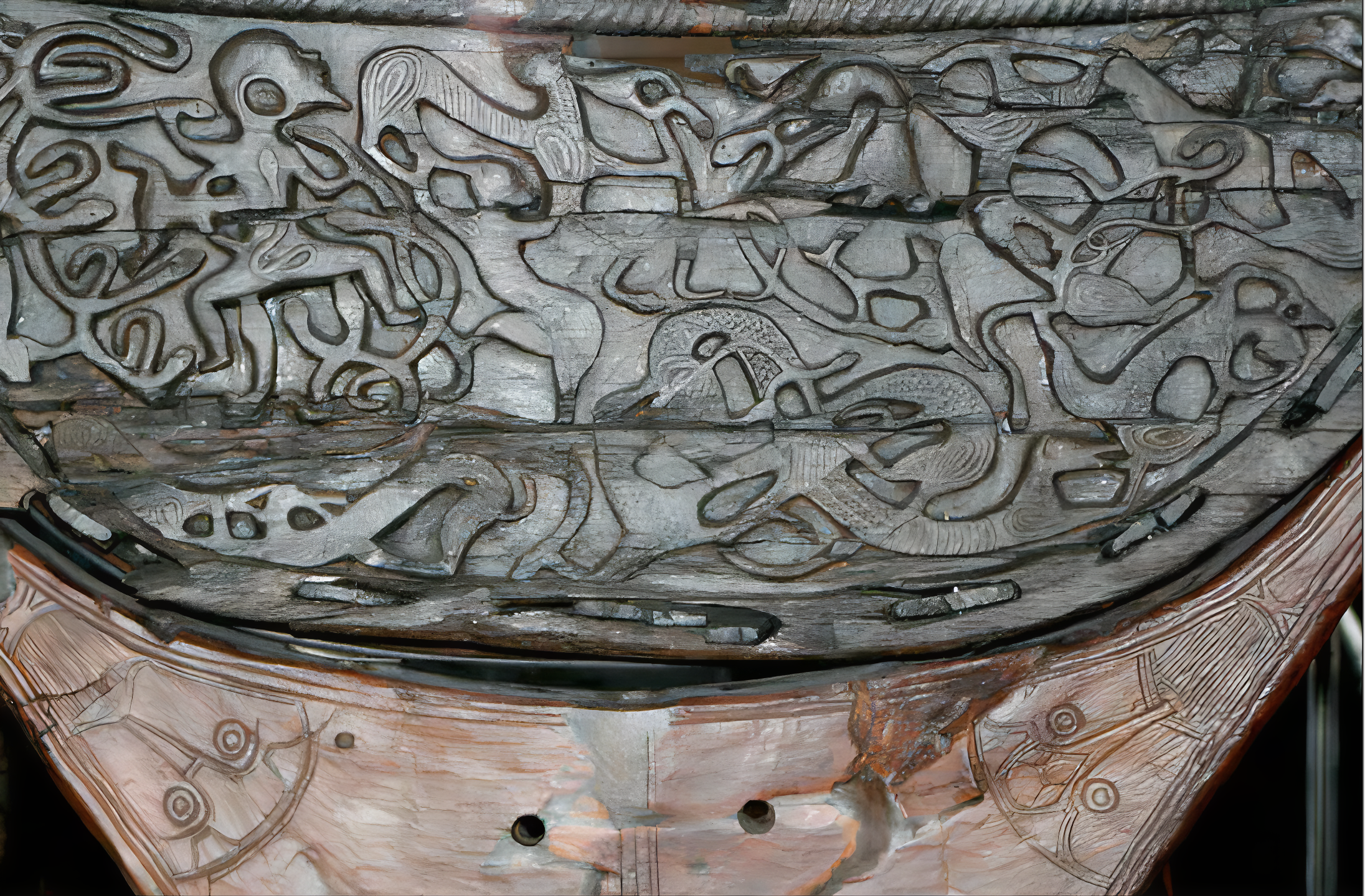 1천200년 전 노르웨이 오스베리 바이킹 선박 Oseberg Viking ship 무덤에 새긴 조각바이킹이 그 성격답게 선박 자체를 무덤 매장 시설로 사용한 사례를 여러 번 소개했거니와 개중 대표가 오스베리 선