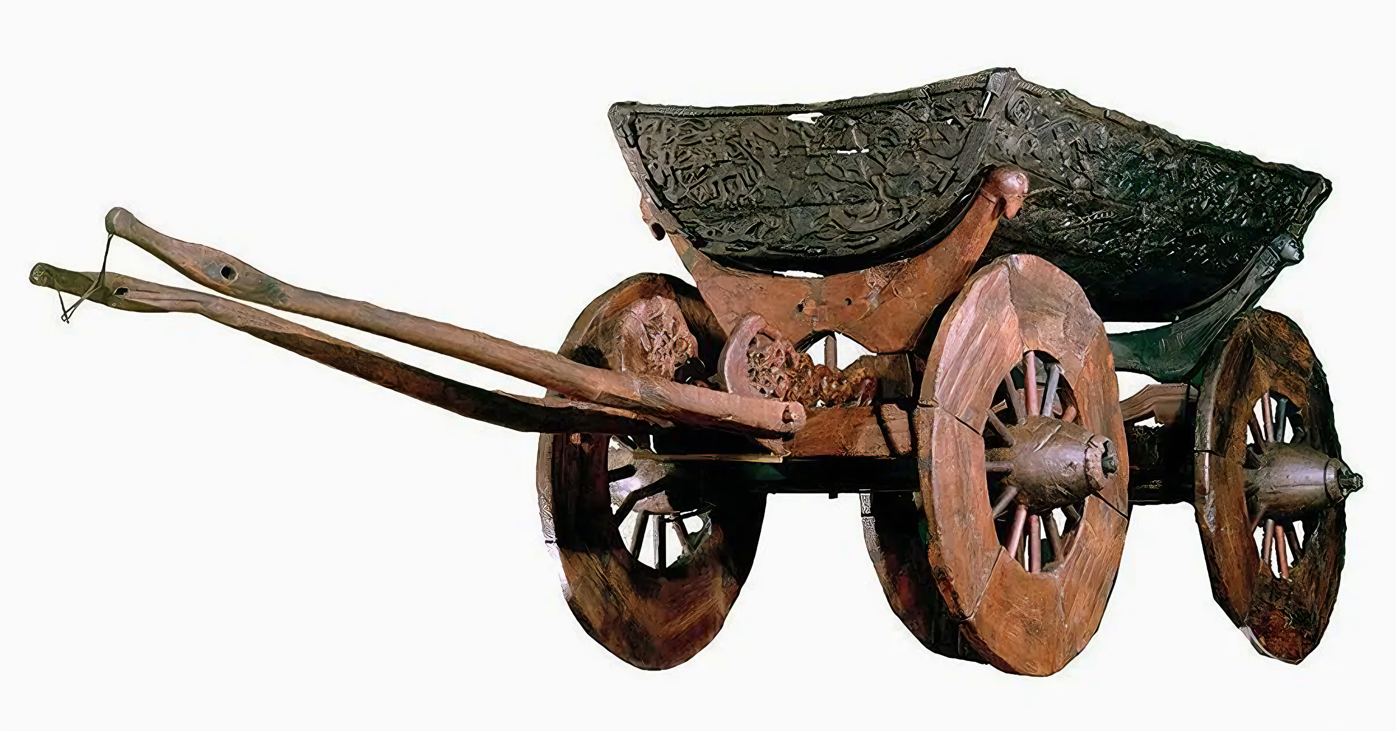 1904년 노르웨이 베스트폴드Vestfold에 있는 화려하게 장식된 오세베르그 배무덤에서 발굴된 이 오세베리 마차는 현존하는 바이킹 시대 마차 중 유일하게 완벽하게 보존되어 있다.