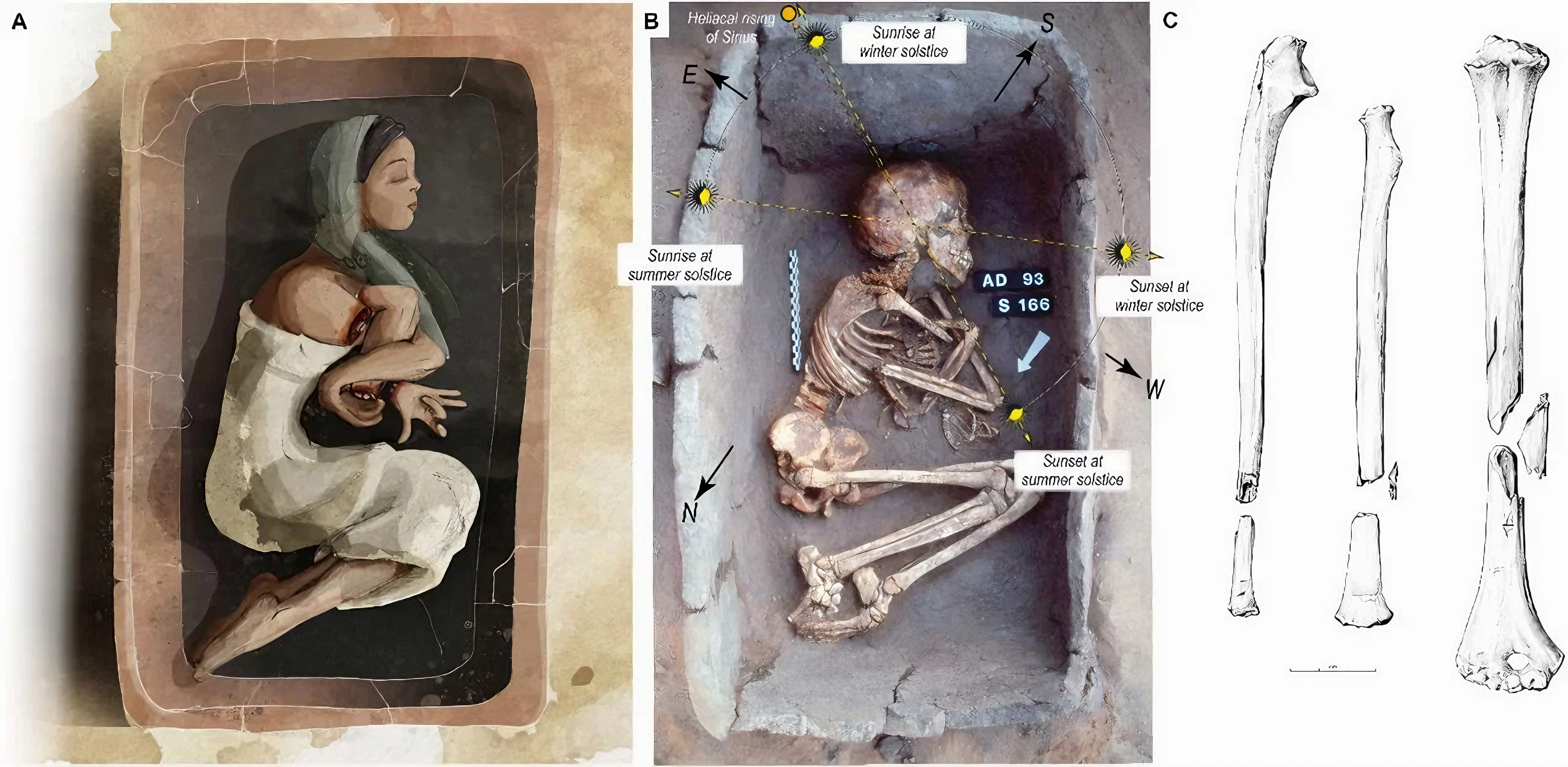 특히 특이한 매장지 중 하나인 S166호 무덤에는 10대 소녀 시신이 안치되어 있었는데, 그녀의 왼팔은 의식에 따라 잘려 가슴에 얹혀 있었다.