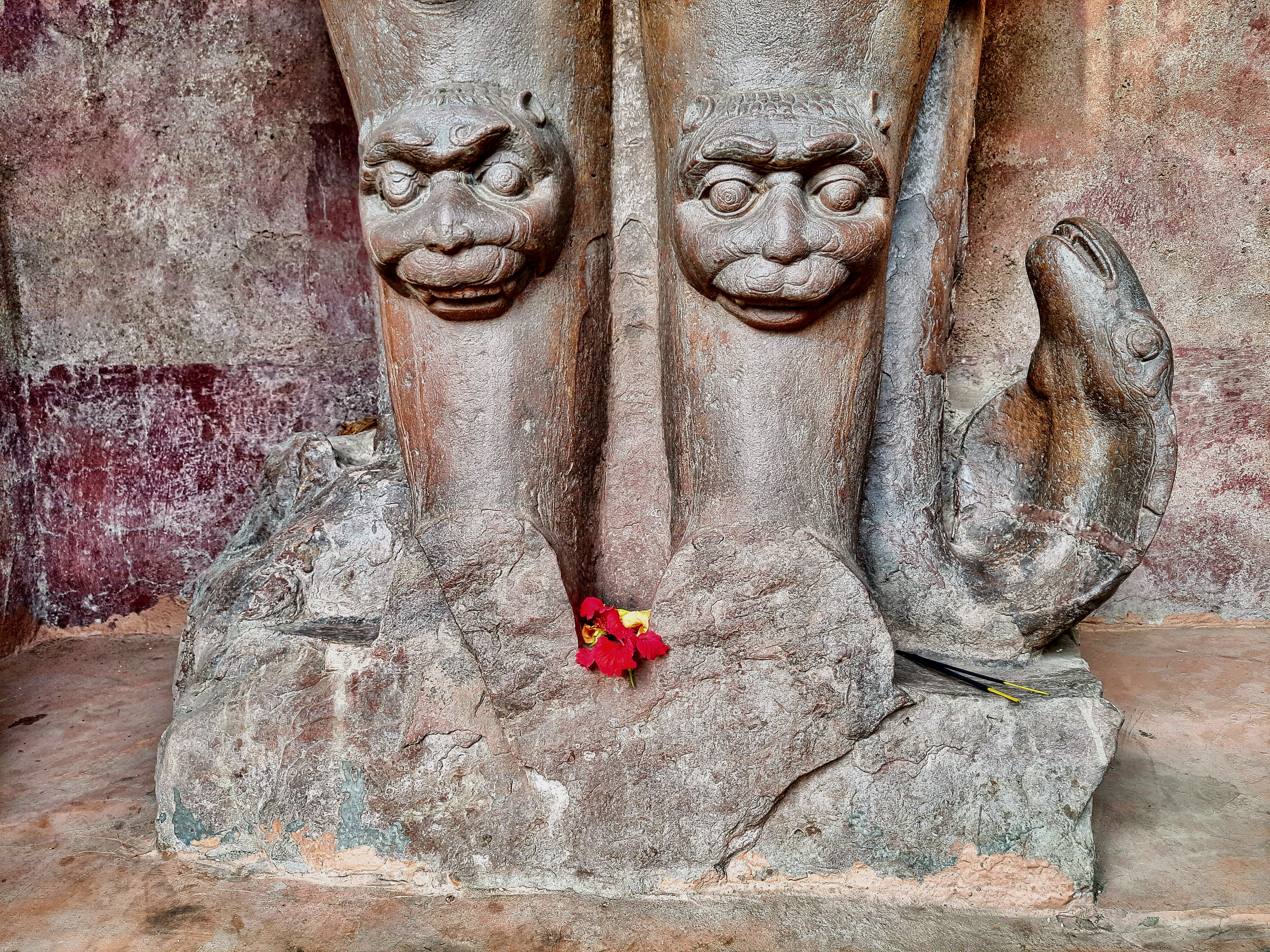 이 탈라(Tala) 수수께끼 조각상은 데브라니Devrani 사원 앞, 플랫폼으로 이어지는 계단 왼쪽에 서 있다. 이것이 발견된 곳이다.
