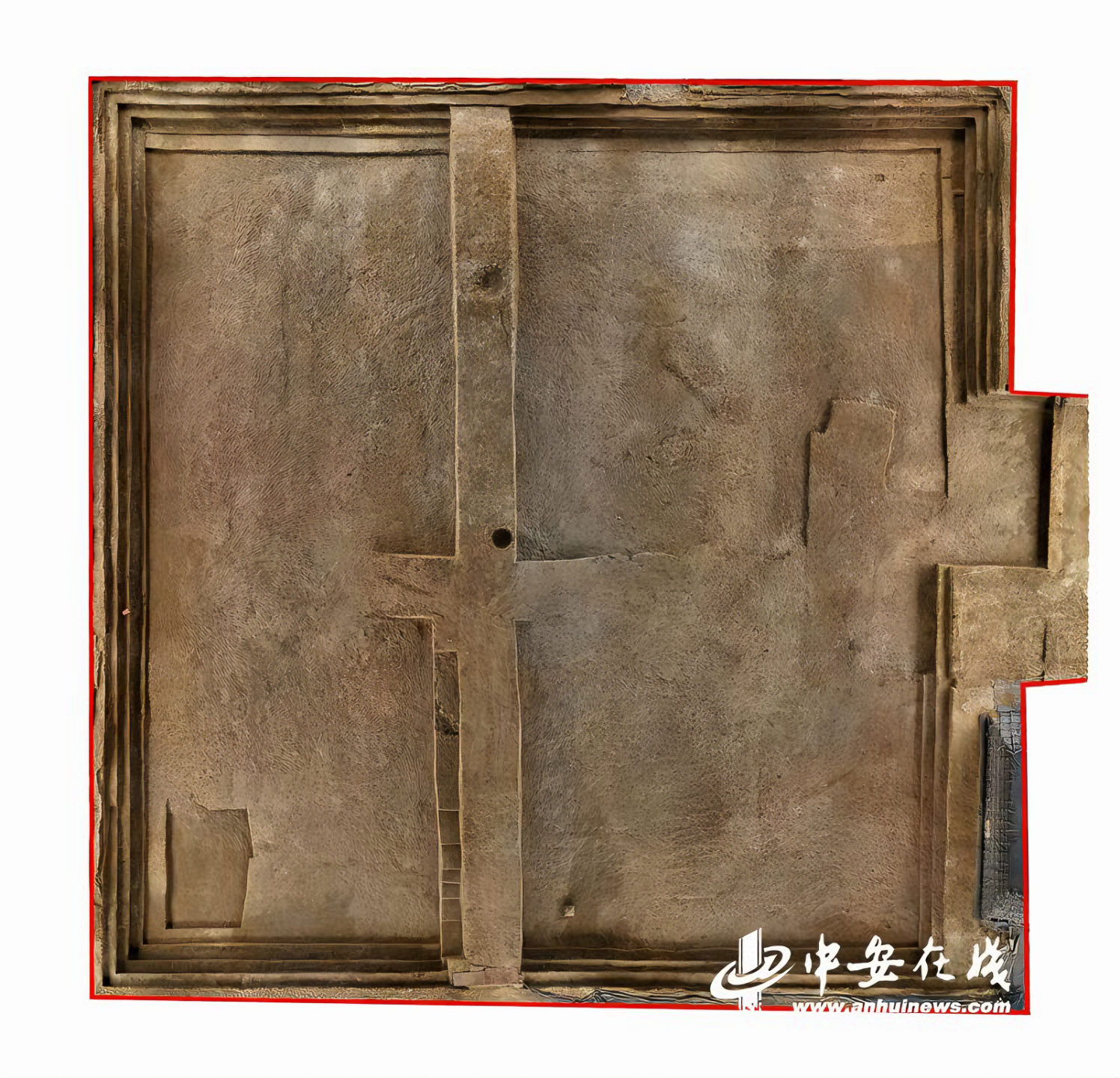 지난해 중국 고고학계를 흔든 발굴 중 하나인 안휘성安徽省 회남시淮南市 우왕돈武王墩 1호묘 발굴 양상 중 봉토를 걷어내고 이른마 매장주체부가 드러나기 시작한 장면이다.